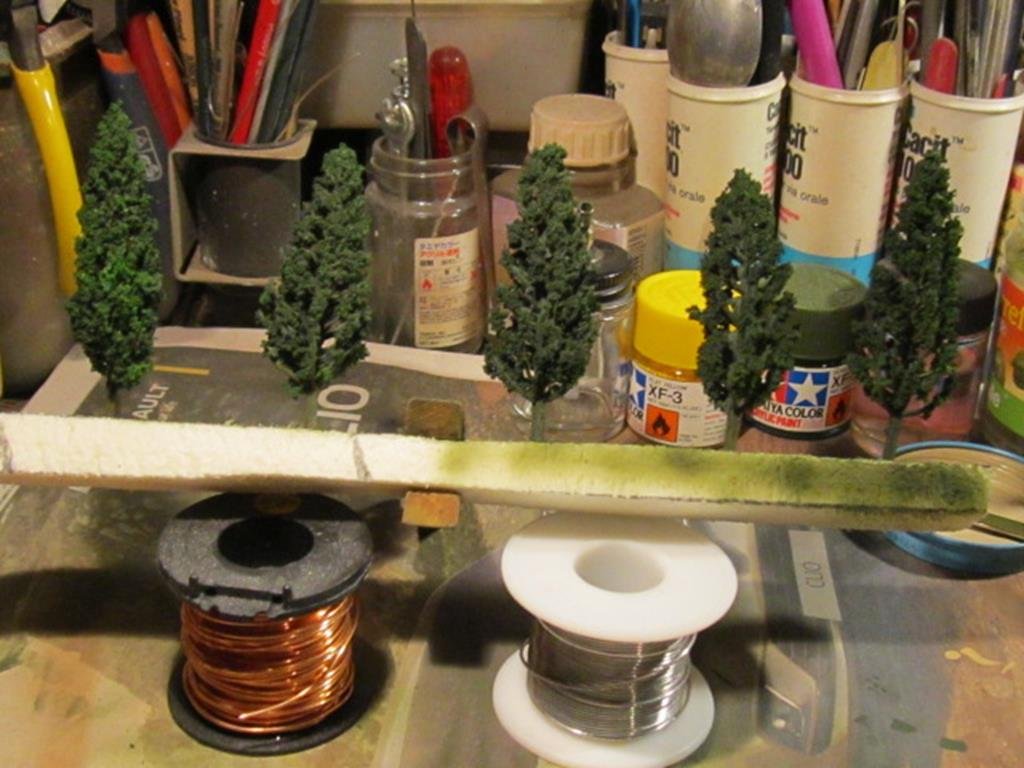 Approfittando della raccolta a fascicoli De Agostini sulla ferrovia " del Gottardo " ho voluto utilizzare degli alberelli che assomigliano un po ai cipressi che si trovano ai bordi di alcune strade di campagna. Anche se in 1:160 ben si adattano alla Z.
