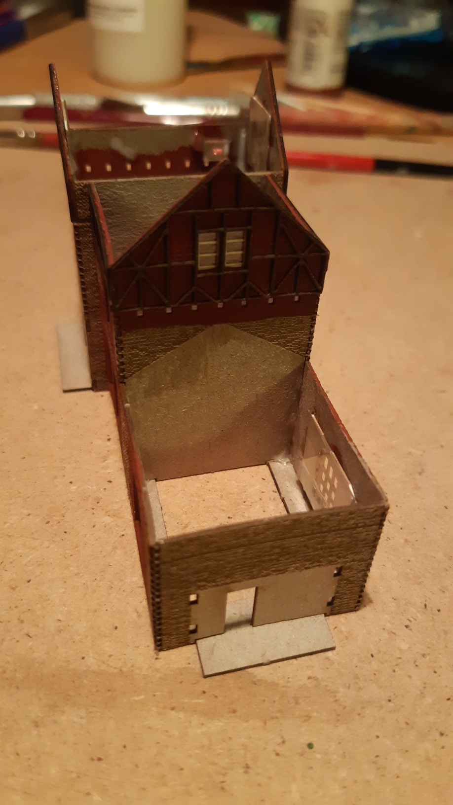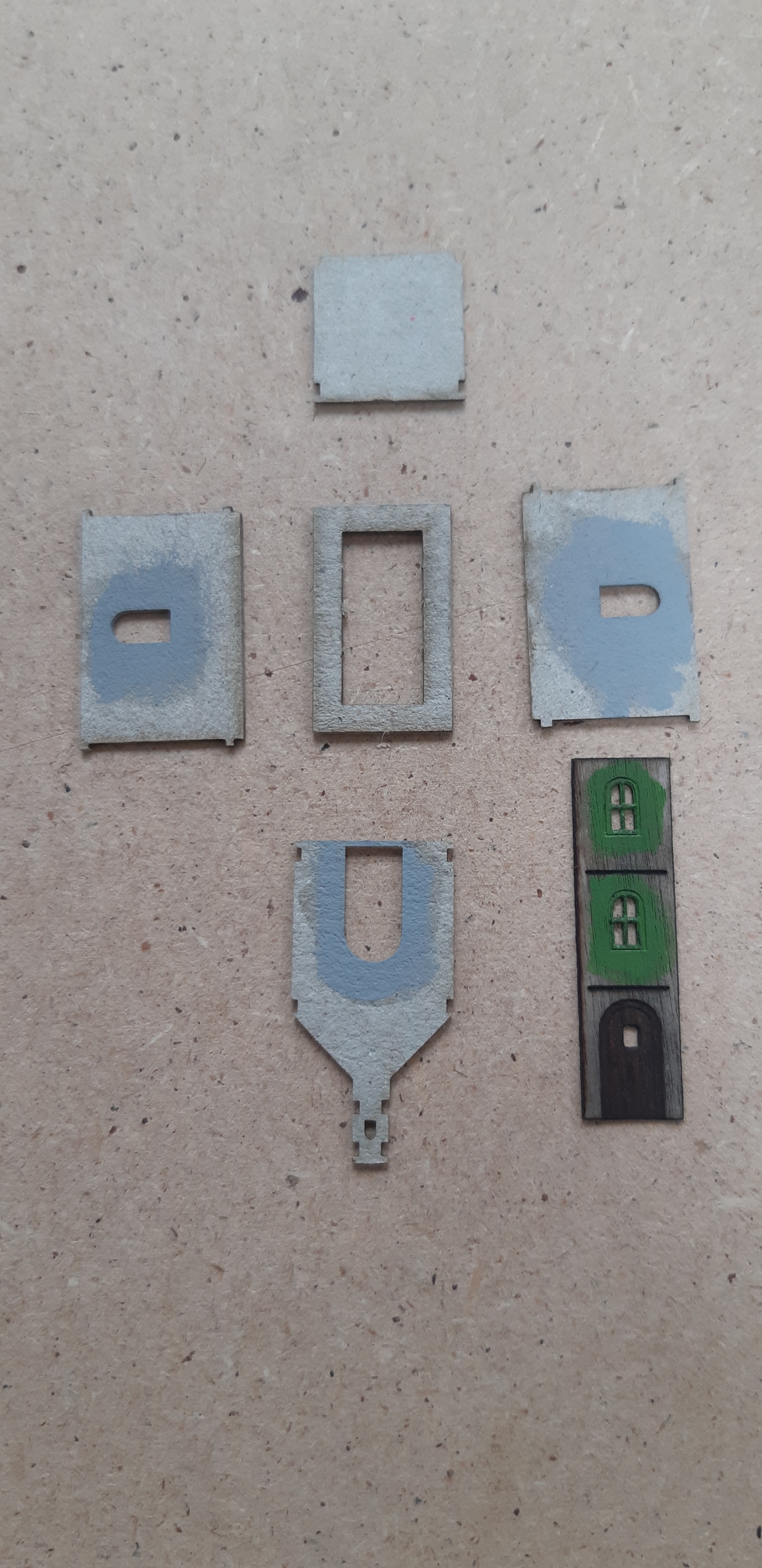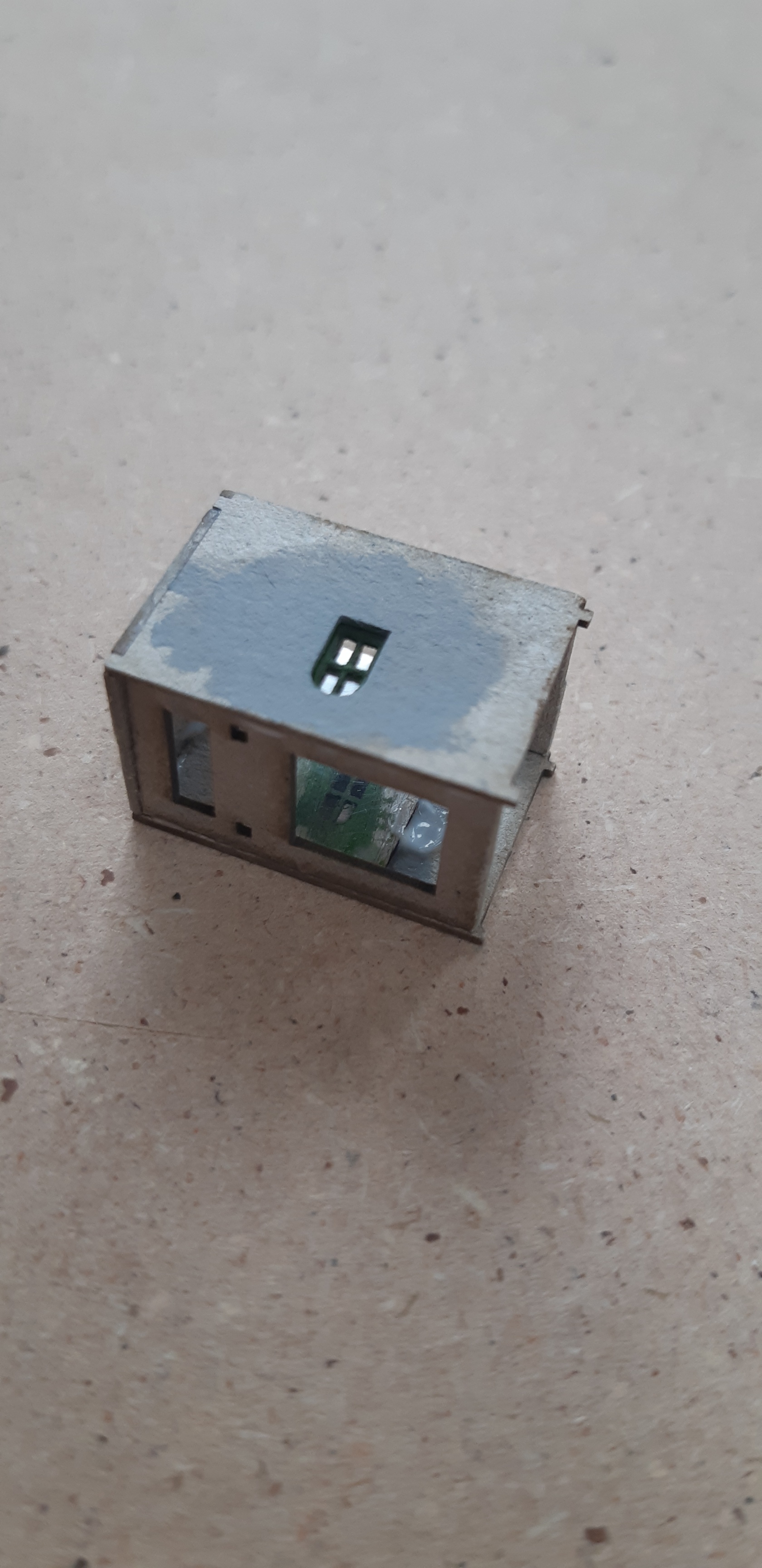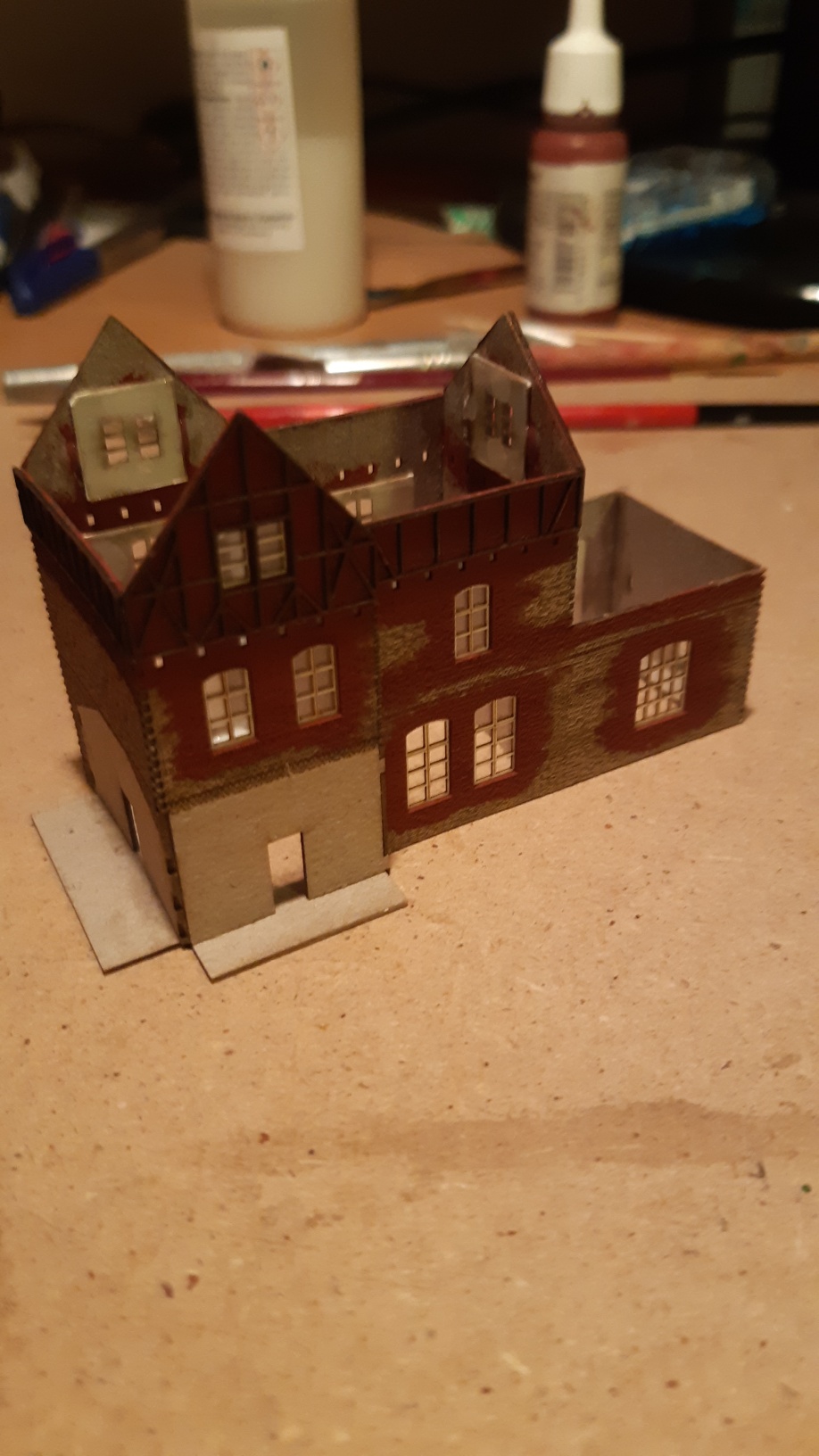 Sono dunque intervenuto nel montaggio in maniera diversa, ho dato primer nella zona delle finestre, della porta e sugli infissi per poi passare il colore e incollandoli subito sui muri che ho poi incollato tra loro chiudendoli con il soffitto con la centina dl tetto nella parte superiore.
