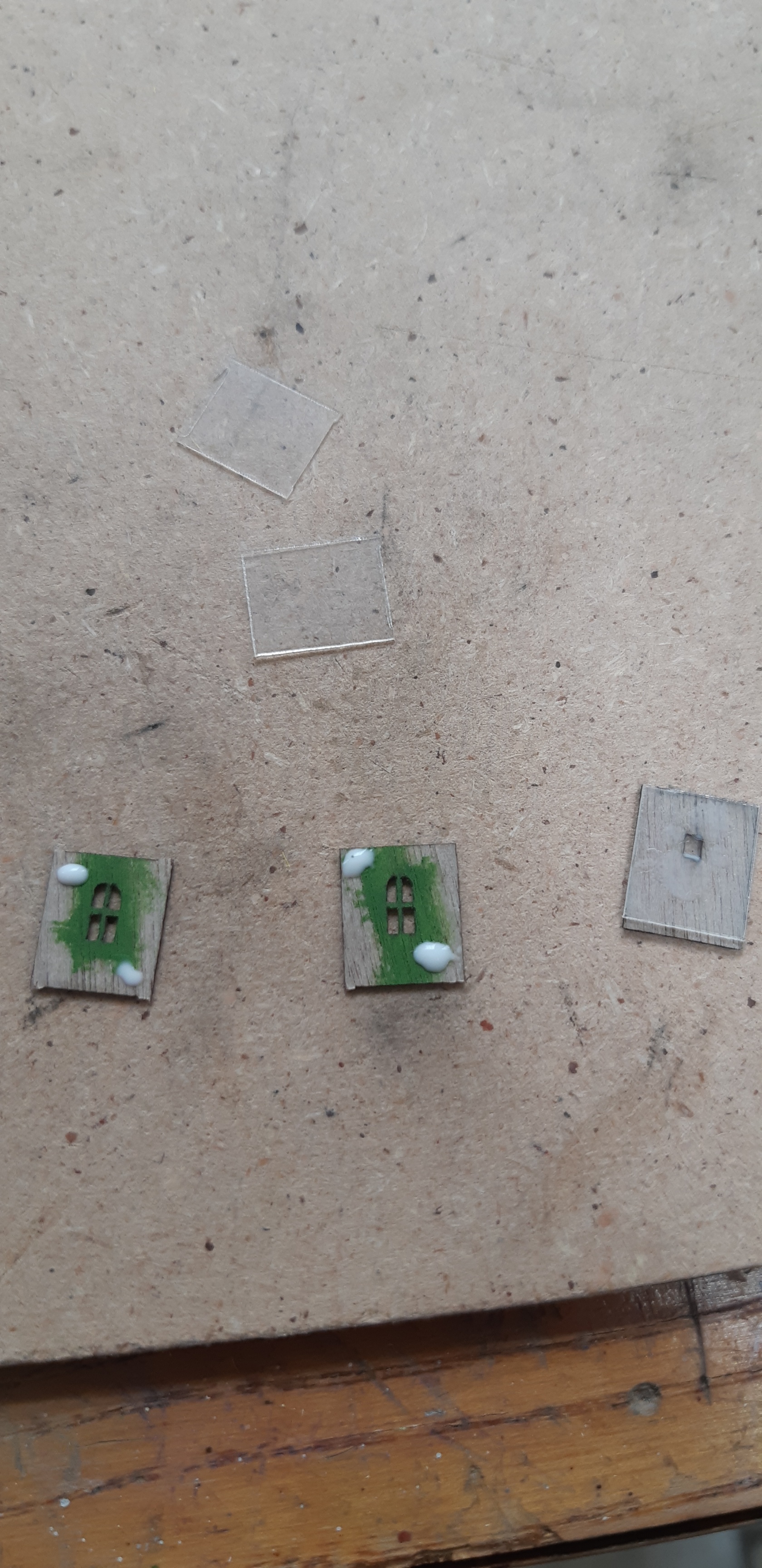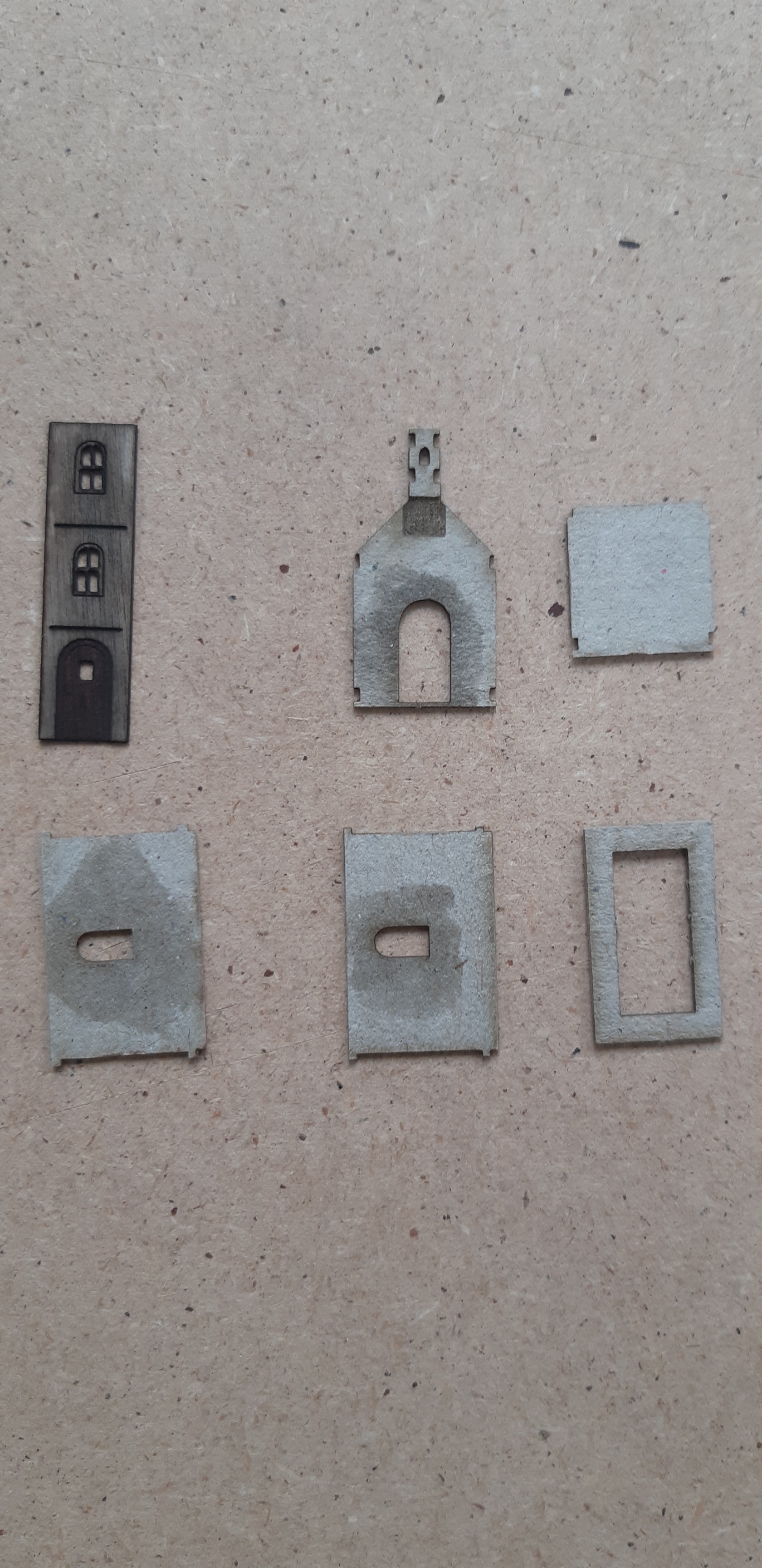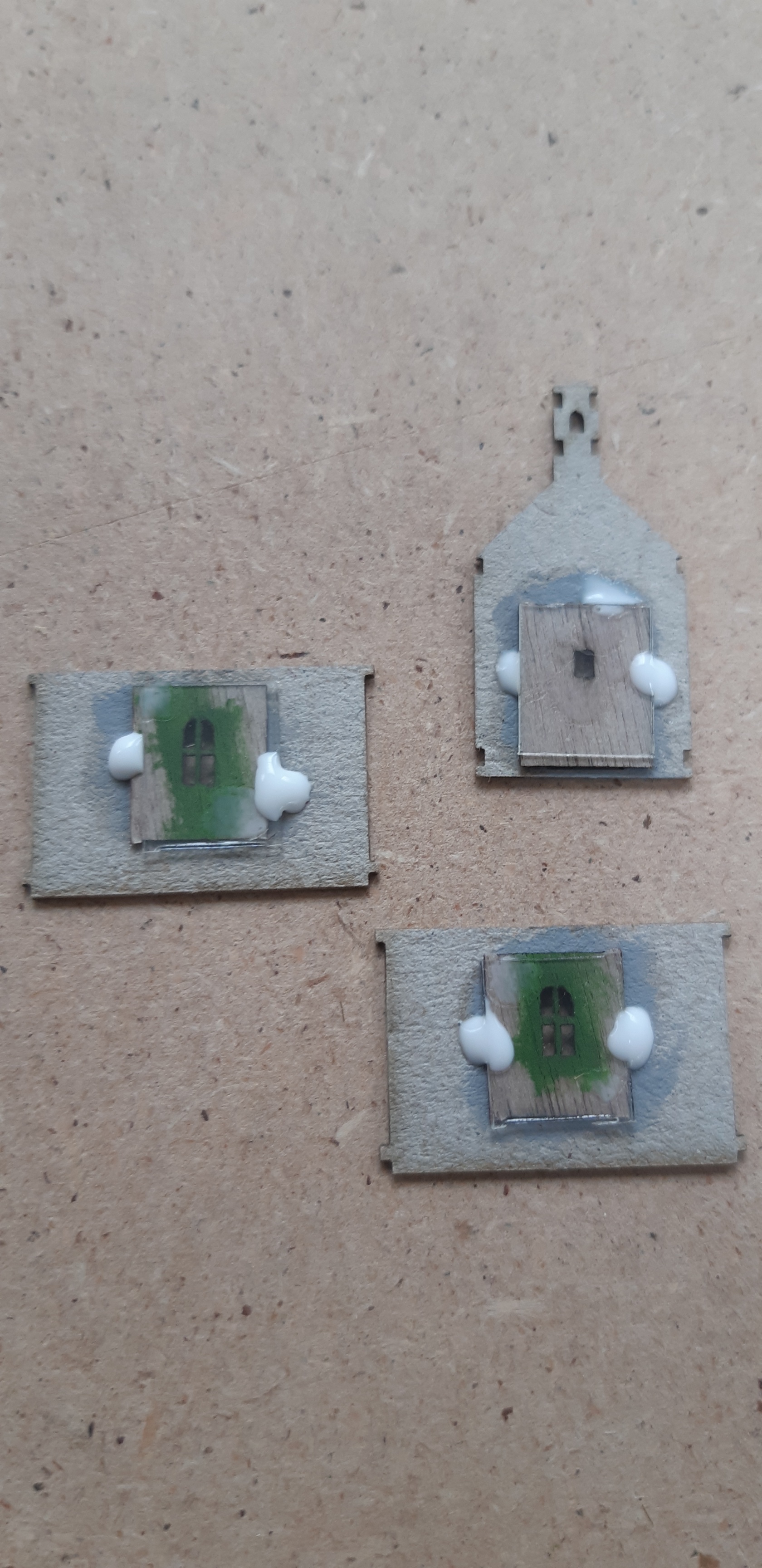 Vedendo le dimensioni e studiando le istruzioni mi sono reso conto che non sarei riuscito a incollare le finestre e le porte dopo aver montato le mura formanti la struttura della chiesetta.