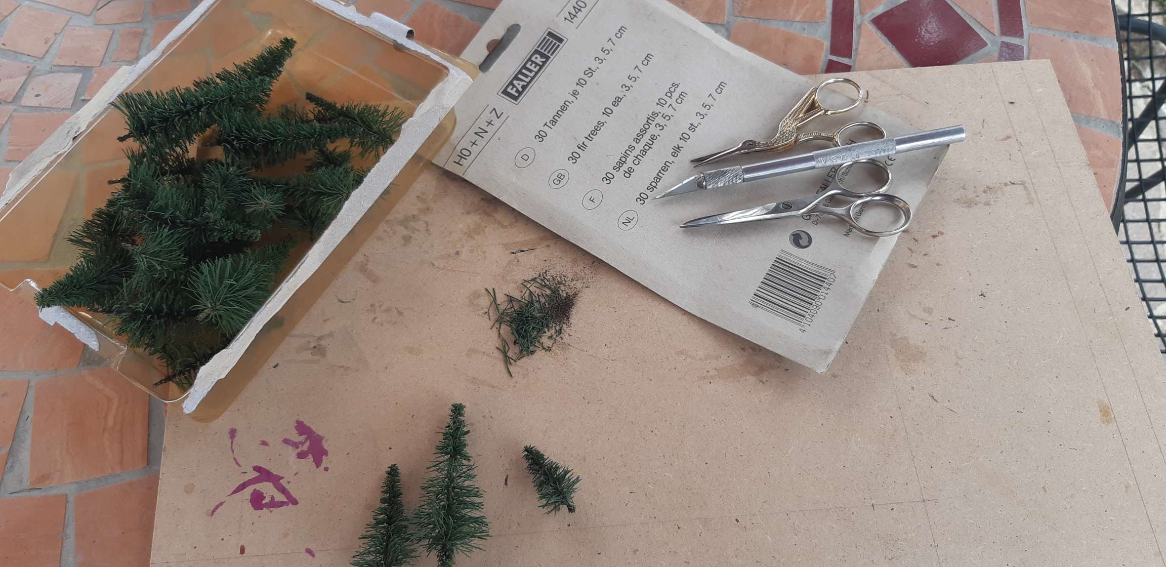 Dapprima tho agliando tutte le doppie punte, qualche taglio qua e là per dargli un pò di forma e un pò di verde chiaro pennello sulle punte a per dargli un pò di realismo