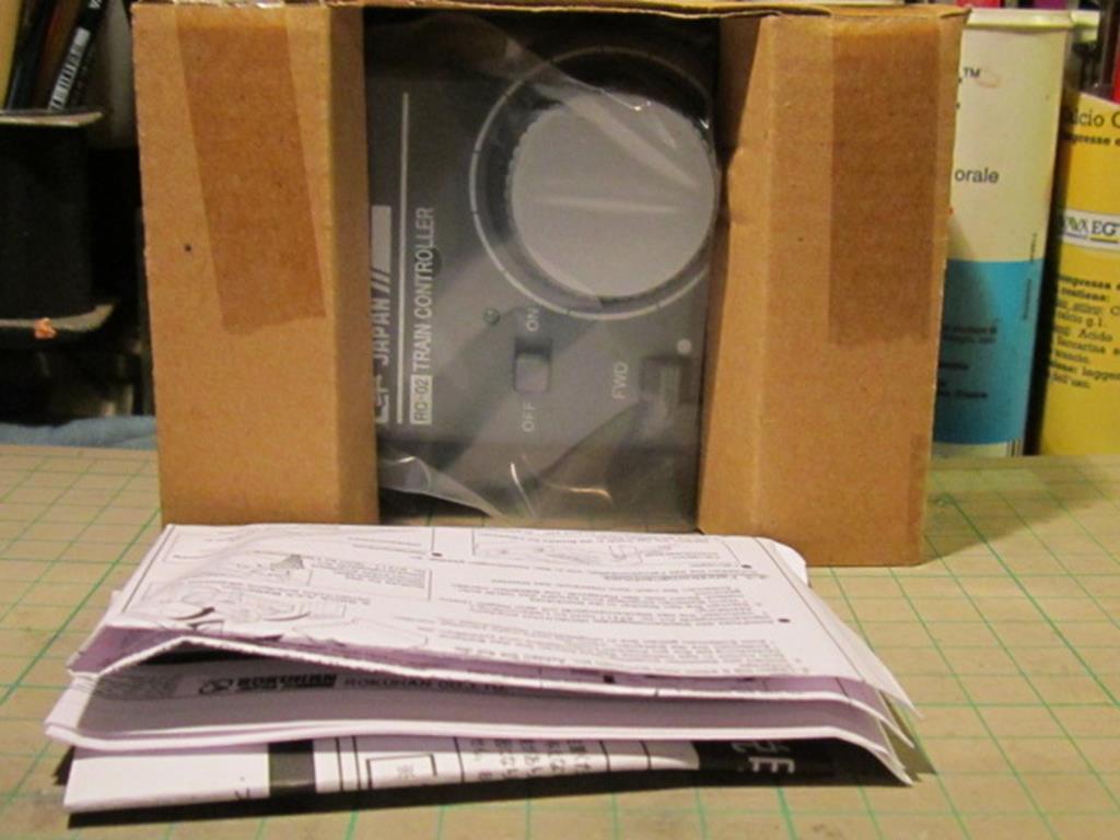 La confezione si presenta molto robusta e ben ordinata, al interno troviamo oltre al regolatore un cavetto di connessione alle rotaie art Rokuhan A008 lungo 70 cm, istruzioni in giapponese e Tedesco