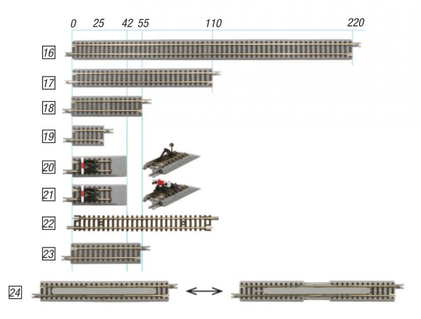 22 97045 R045 Traccia dritto, 110 mm, senza cingoli per ponti