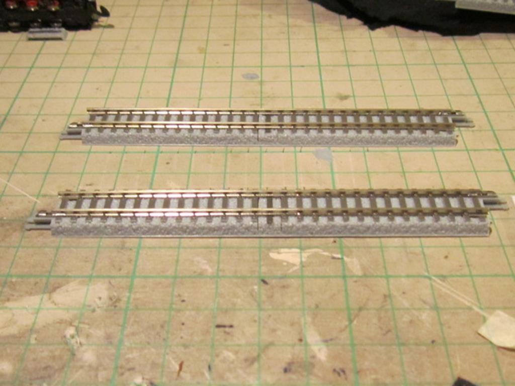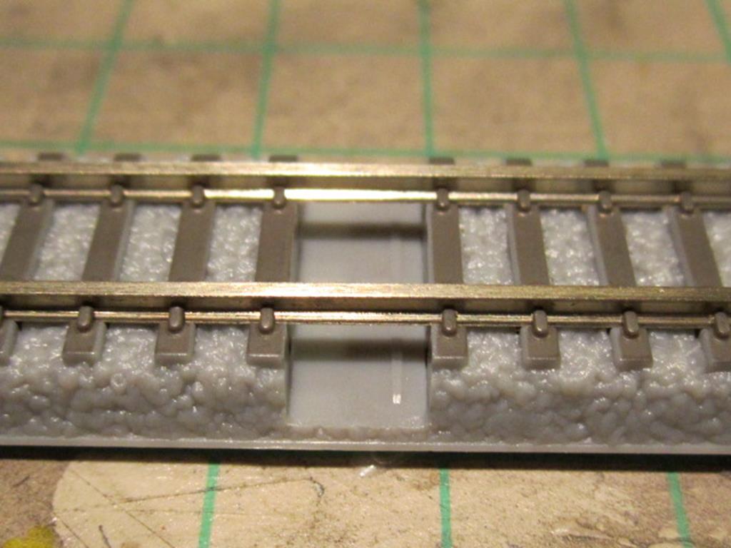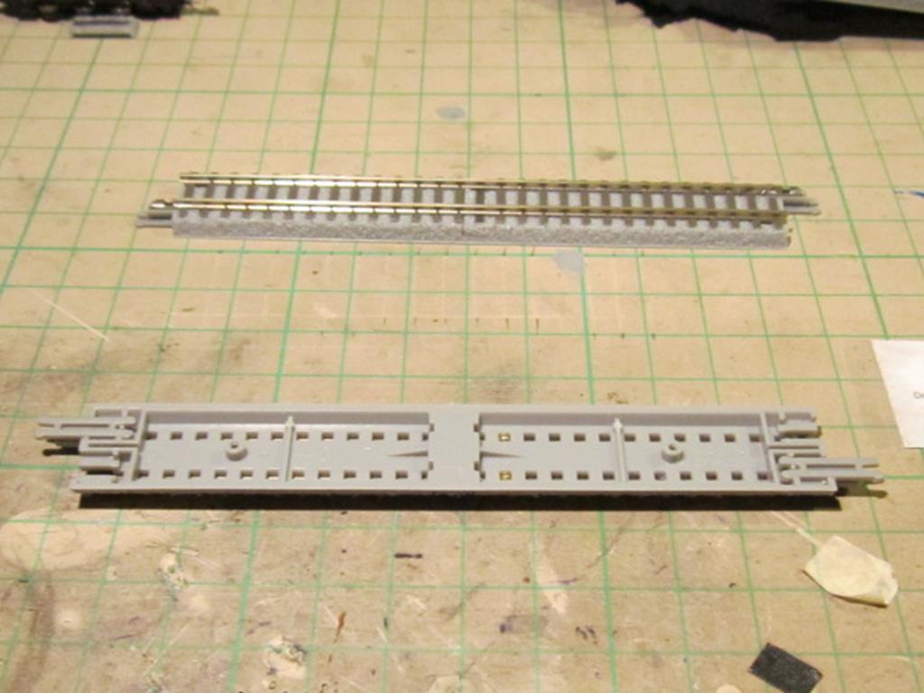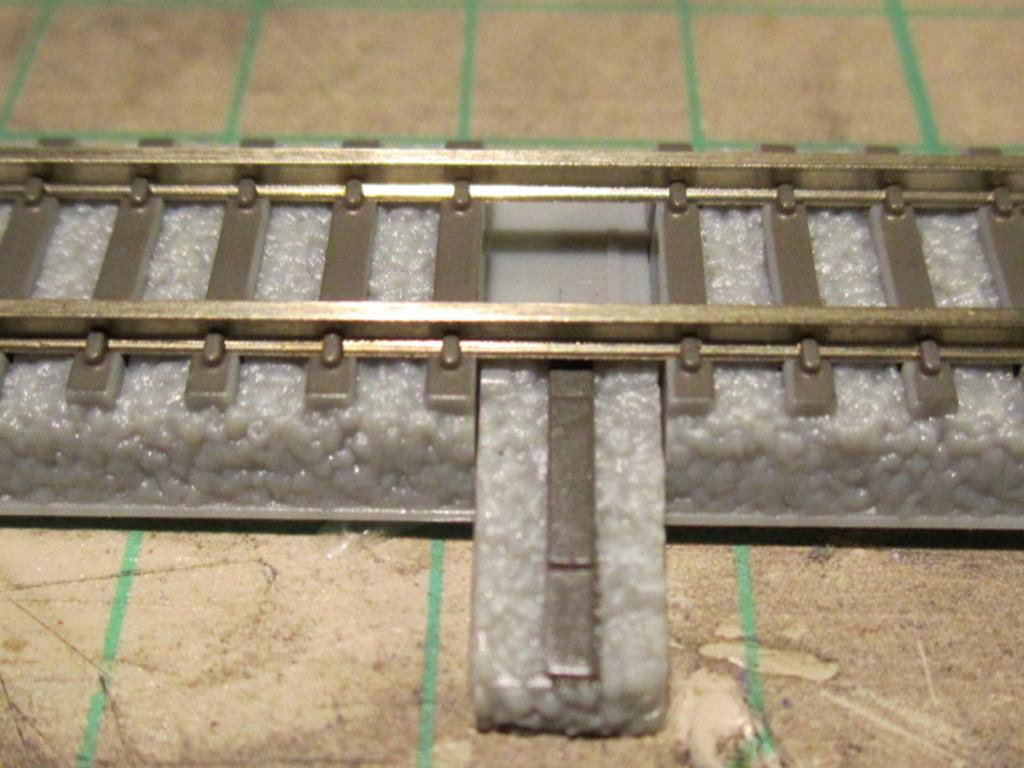Il binario diritto con lo scasso non è che il classico binario diritto NO- 97001- 110 mm a cui volendo e semplicissimo fare lo scasso con un normale cutter modellistico e mano ferma
