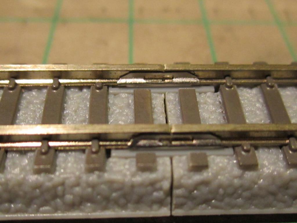 Il sistema di connessione tra i vari spezzoni non si basa solamente sulle scarpette metalliche ma anche tramite un clips in plastica che aumenta notevolmente la resistenza. Tra le clips gli incavi e scarpette le giunzioni tra rotaia e rotaia rimane molto solida senza spazzi ( cosa utilissima in Z per avere sempre una buona continuità )