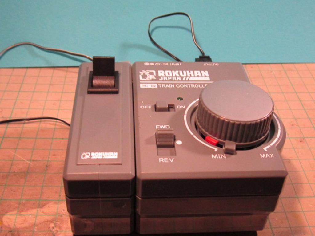Al contrario dei nostri regolatori che possono ruotare a DX e SX per invertire il senso di marcia e variarne l'intensità sul Rokuhan RC 02 vi è un apposito tasto a slitta di reverse con 0 centrale, inoltre troviamo il classico pulsante ON/OFF servito da apposita spia led per vederne l'attivazione