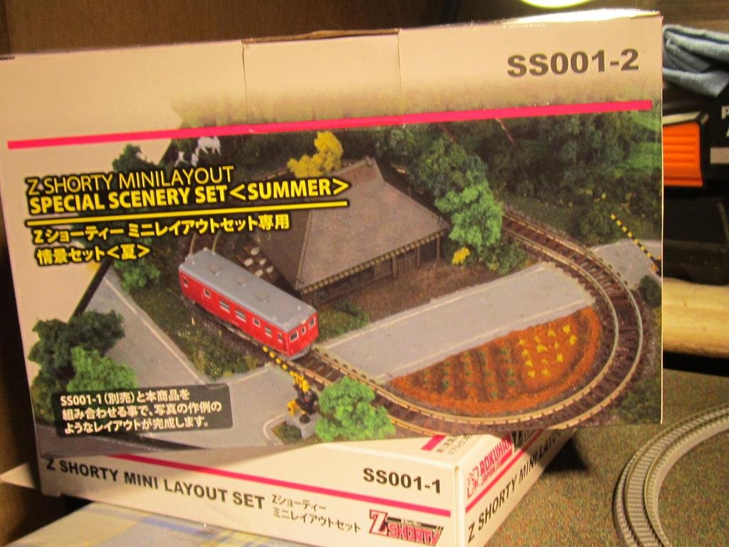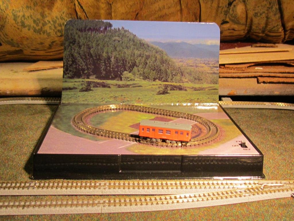 Si tratta di una base in plastica termo formata , con già posizionate le rotaie senza massicciata, piccolo circuito elettrico alimentato tramite una pila da 1,5 stilo AA, uno scenario fotografico applicato sia sulla superficie dove si trovano le rotaie che sul piccolo fondale. Nella confezione troviamo una KIHA 52 con colorazione monocromatica rossa ( differente prefettura )che quella bicolore venduta nel blister, ma già dotata del telaio motore SA001-1 senza i ganci, in ultimo un piccolo alberello. Il tutto posto nel retro della base in pratiche buste contenute in un cartoncino Sul retro della confezione poi troverete un fienile da ritagliare, se cercate questo prodotto lo trovate qui https://www.1zu220-shop.de/ROKUHAN/Shor ... 36195.html