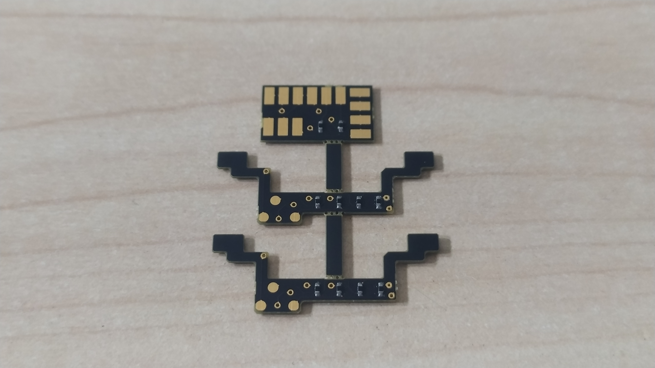 L'impianto luci è caratterizzato da 3 circuiti stampati con spessore di 0,6 mm, fotoresist nero e finitura superficiale ENIG (Electroless Nickel Immersion Gold).