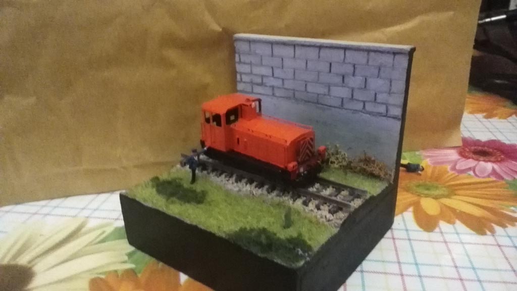 In questi giorni mi hanno chiesto di fare dei piccoli diorami con il locomotore in oggetto. Niente di particolare, solo un piccolo piano con un segmento di binario.