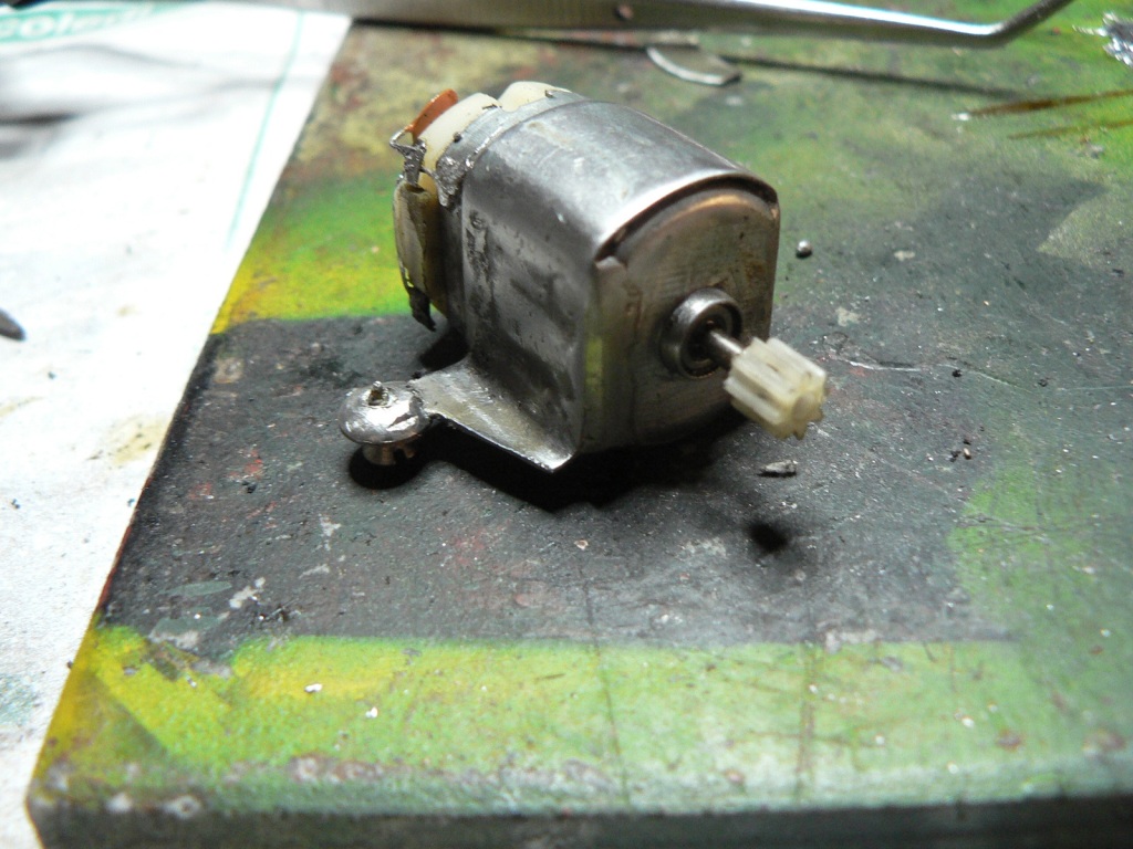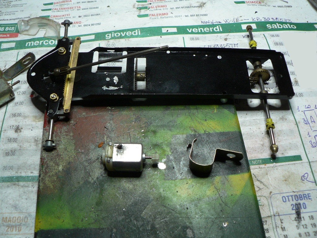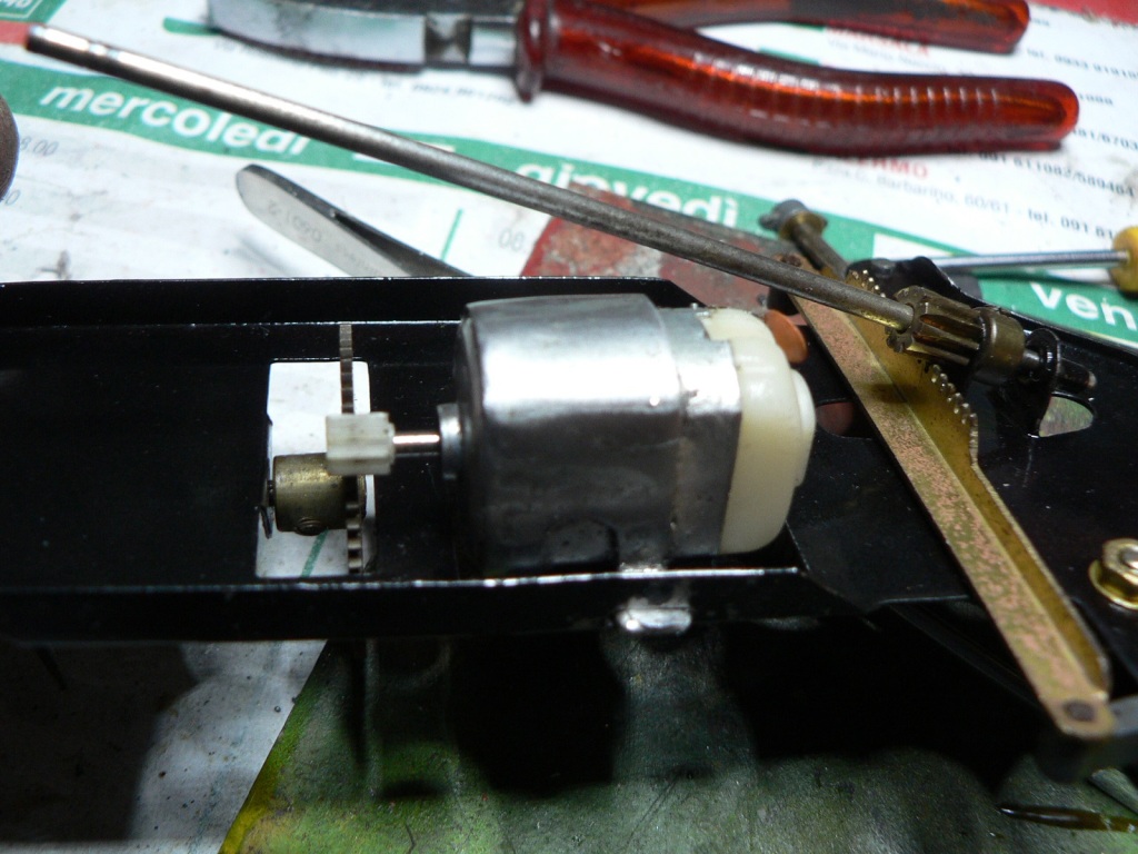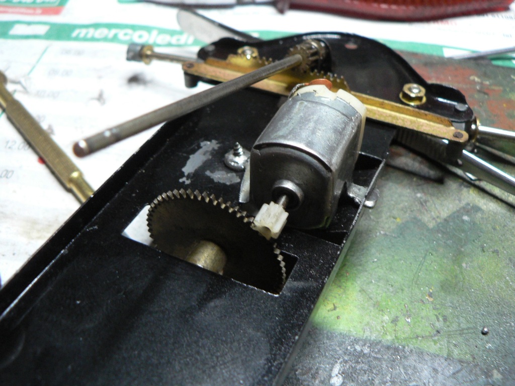 Al motore, grazie allo scalettatore di Roy, viene sostituito il pignone in plastica con uno in ottone recuperato dalla meccanica di una stampante.