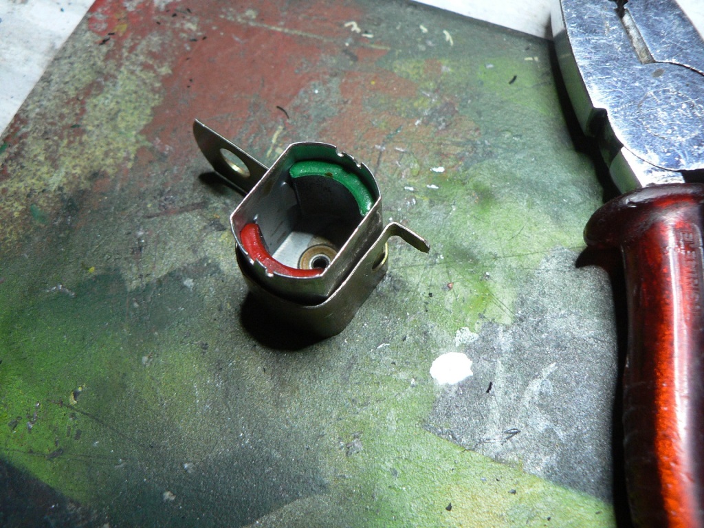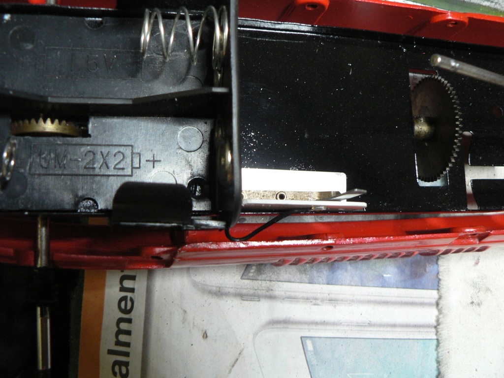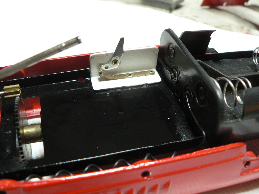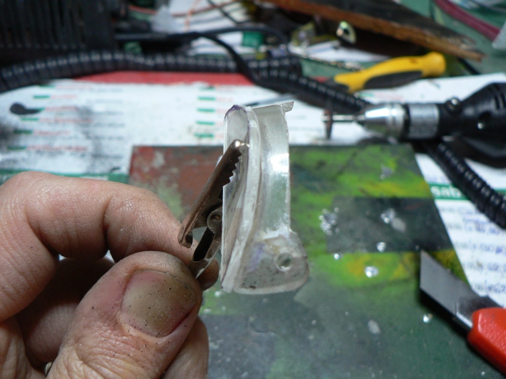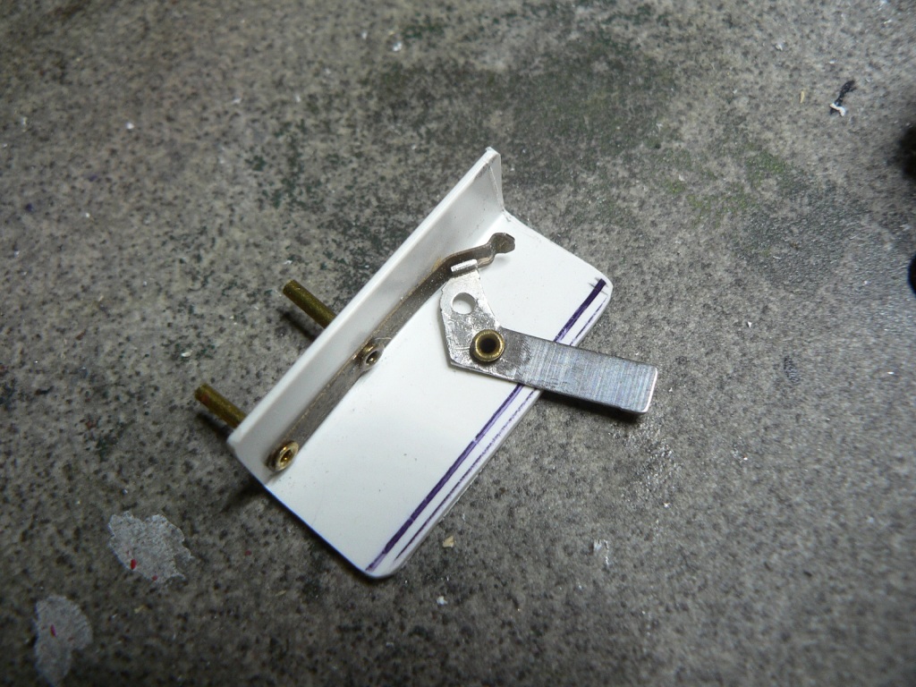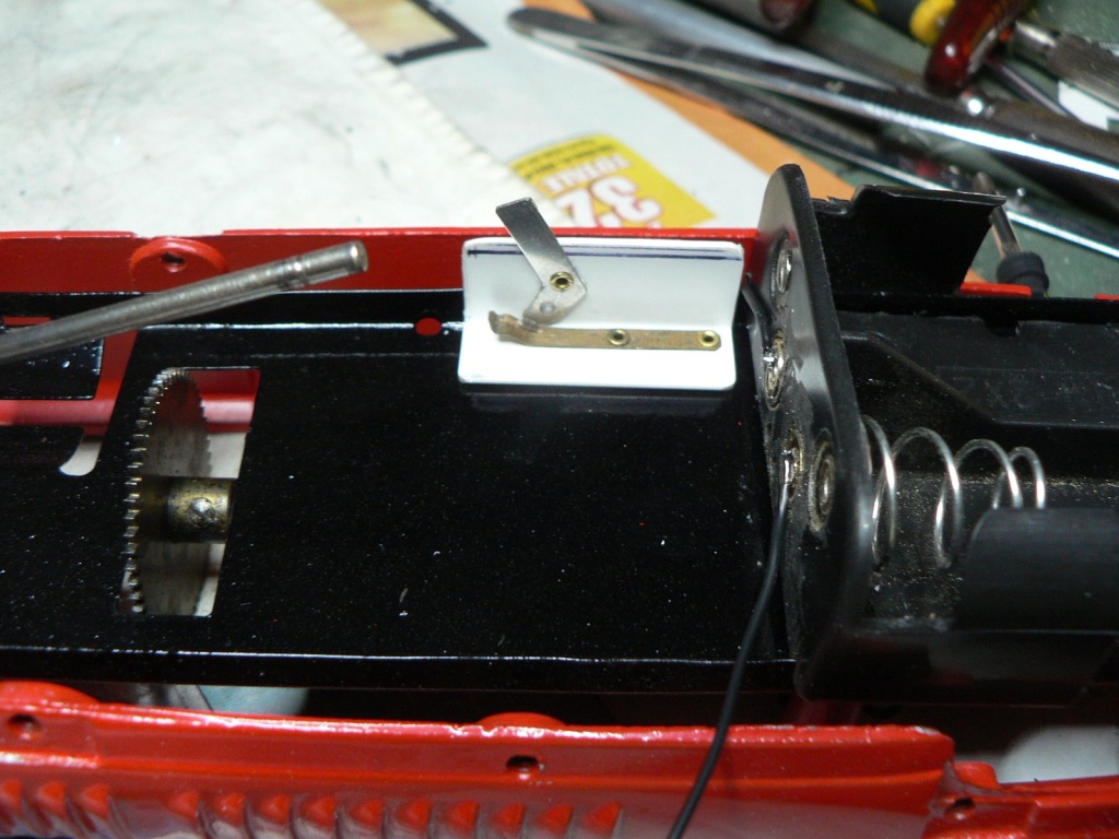 Unendo un pezzetto di plasticard e una levetta metallica, scarto di non so cosa, ecco in posizione il nuovo interruttore; pronto ad assolvere il suo compito.