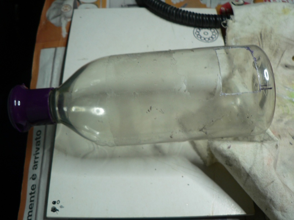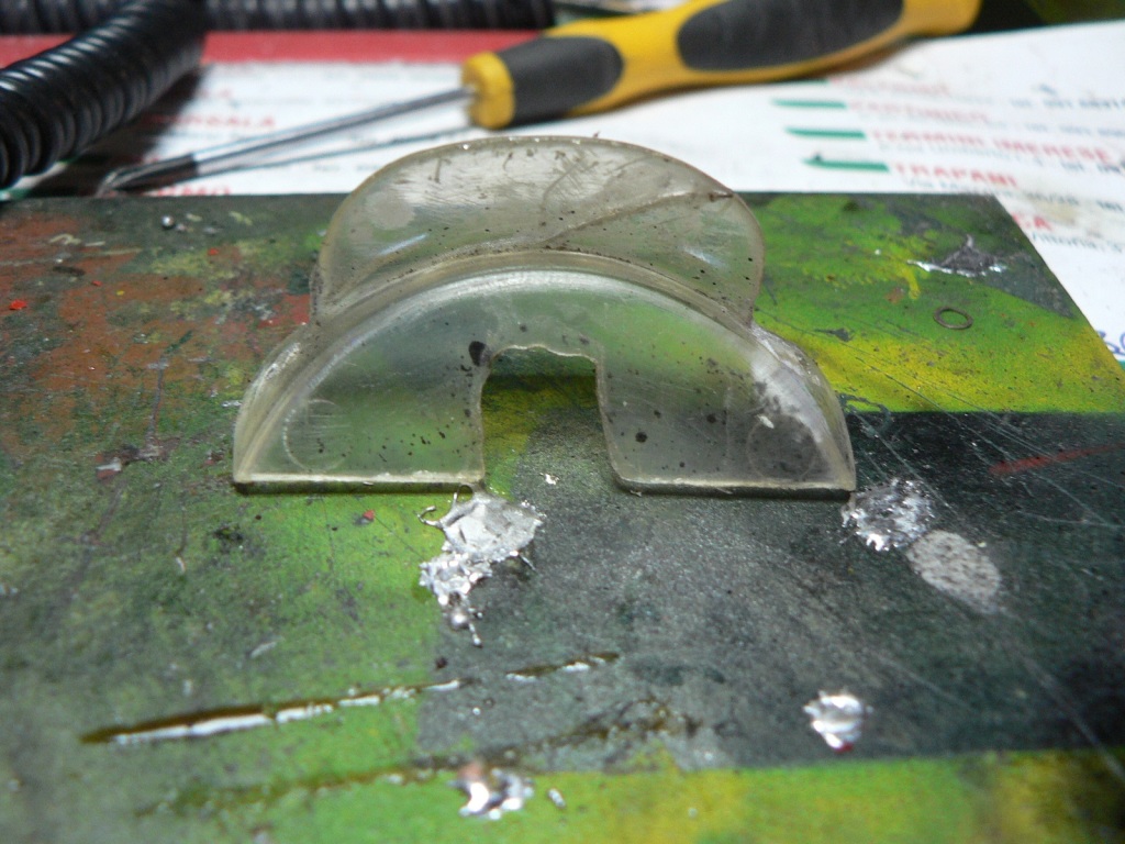 Costruisco quindi una sagoma in legno e la modello fino a farla coincidere perfettamente con la curvatura del vecchio parabrezza, poi una bottiglia in plastica trasparente mi darà un grosso aiuto; il risultato è nella sequenza fotografica seguente.