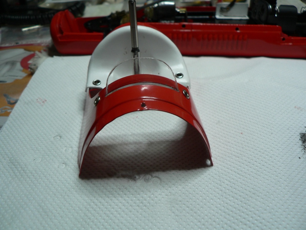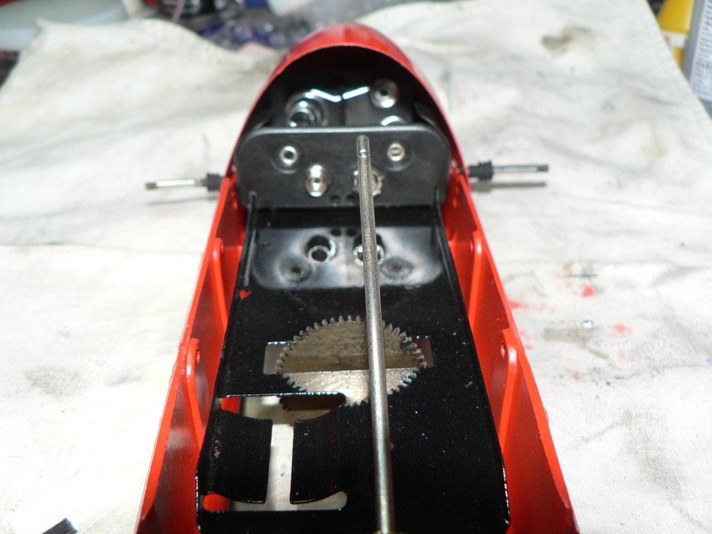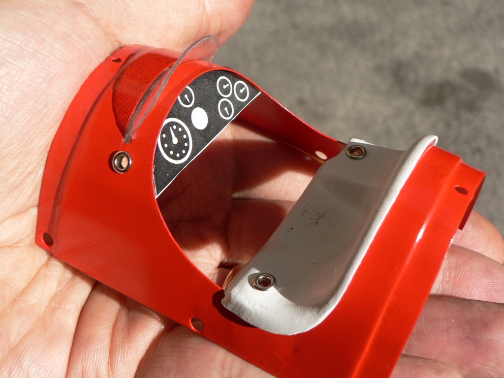 Sull’interruttore/leva del cambio, un piccolo pezzo di guaina di un filo elettrico, una goccia di ciano acrilato e un’altra di vernice, generano un piccolo pomello per non ferire la mano del pilota durante i frequenti cambi di marcia.