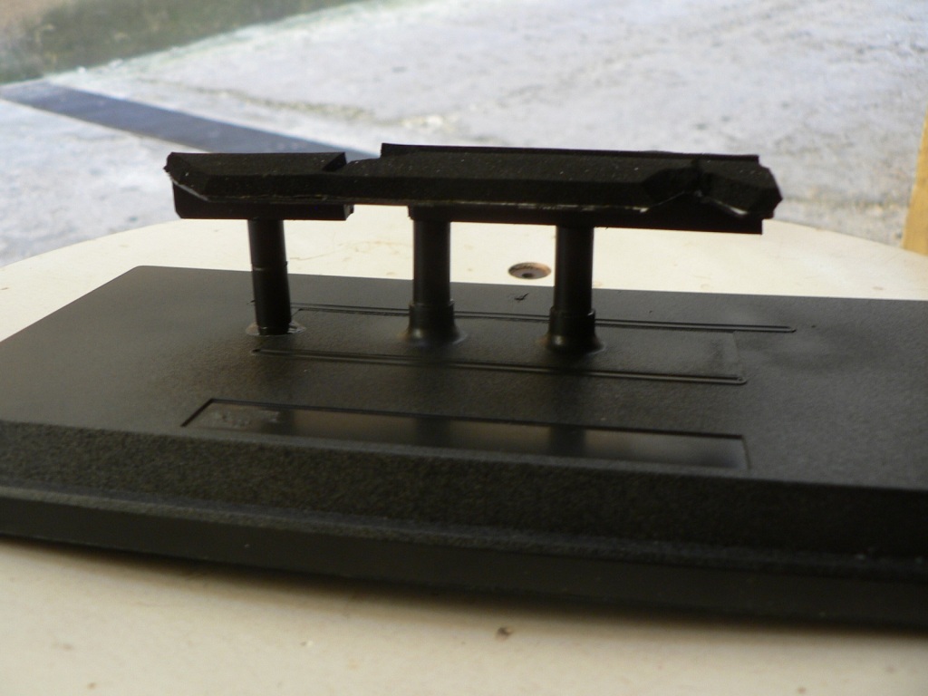 La forma strana del supporto, serve ad evitare che tocchi contro qualsiasi elemento dell’auto quali sterzo, ingranaggi e albero della trasmissione. Il modello ha finalmente un posto "comodo" (poggia su di una spugna), su cui stare.