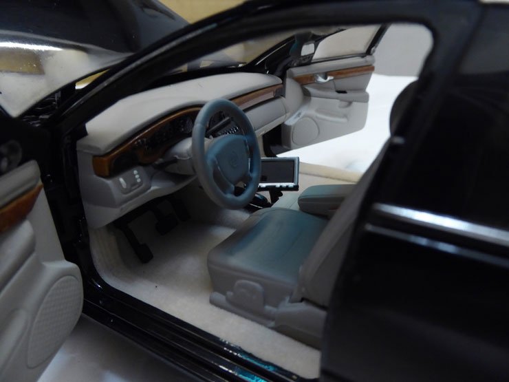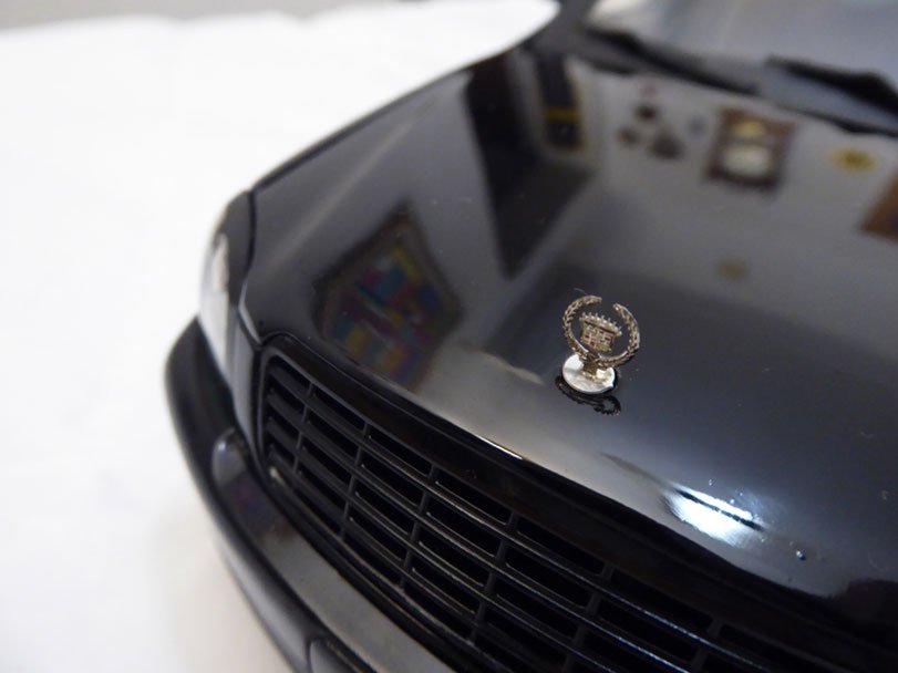 lunga ben 47 cm, con un peso che credo sia quasi di 2 Kg ! Generalmente i modelli " Die Cast " presentano alcuni comuni difetti che esteticamente ne compromettono la riuscita del modello , nello specifico, risultano evidenti le fessure nelle parti apribili, cofani e portiere, e temevo molto questa cosa, fortunatamente no , perfetta e corretta ; solo se spendiamo parecchi soldini su marchi come Norev, Minichamps, Kyosho, modelli costosi, avremo la probabilità maggiore di esenza di difetti ; questo modello presenta innanzitutto sul cofano motore , uno stupendo e corretto simbolo Cadillac in metallo, di eccellente fattura, estremamente piccolo ; belllissima la riproduzione del motore, mentre il vano bagagli è foderato in simil tessuto vellutato ; tutti gli interni, meravigliosi, ma poco visibili esternamente, sono stati riprodotti, se non erro può ospitare 10 persone comodamente, troviamo anche i servizi di bicchieri con tanto di marchio per quelli da birra, inoltre vi è riprodotto lato autista ,anche un tablet per il controllo del veicolo ; ruote naturalmente in gomma e sterzanti, complementari con il volante . Complessivamente il modello, restituisce un'ottima sensazione di realismo, merito anche di un'ottima e fine verniciatura a specchio . Uno solo il problema, ma ne ero consapevole..dove la metto ? Lo spazio in casa è terminato...vedremo, la vedo dura !! :roll: [99] [99]