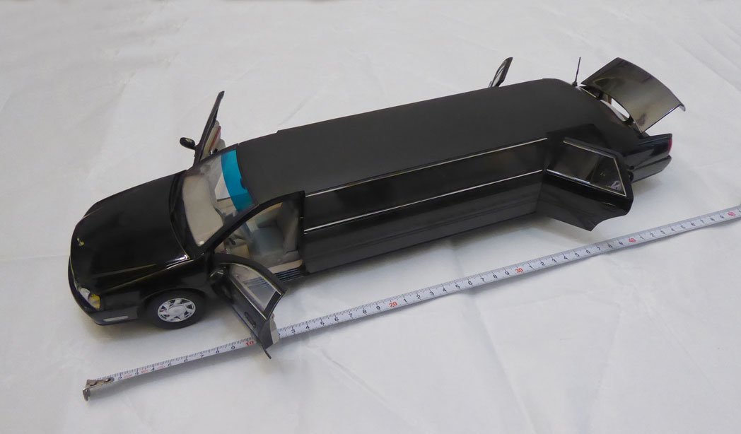 Questa volta Amici, vorrei parlarvi di un modello eccezzionale che ho appena acquistato ; tutto ciò che riguarda per me il modellismo è fonte di interesse, soprattutto di conoscenza storica, per questo non disdegno nemmeno le automobili, anzi ne possiedo parecchi esemplari in diverse scale, del resto in tutta la mia vita le ho sempre avute , da bambino erano la mia cosa preferita, i regali che mi facevano i miei genitori, le conservo ancora in ottimo stato, non le distruggevo mai . La settimana scorsa ho iniziato ad interessarmi delle imponenti Limousine americane e di conseguenza conoscerne l'esistenza di quali modelli fossero disponibili ; trovai così questo imponente modello che andremo a vedere, arrivato giusto oggi, acquistato in Ebay Italia . Sapevo della sua grandezza , ma impossibile fino a quando non ho aperto il pacco ! Stupore assoluto !