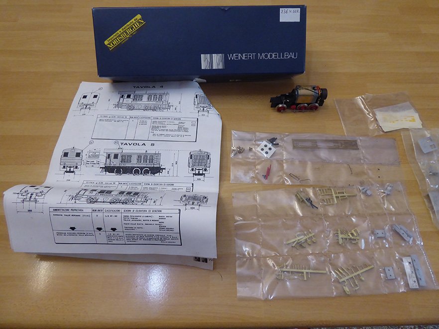 Alcuni anni fa, acquistai per una pipa di tabacco da un amico questo kit in metallo bianco della Weinert, più o meno 60 €, dato che la V 236 mi interessava particolarmente per riprodurla nella versione della Ferrovia della Valle Seriana, probabilmente non ne era aconoscenza del reale valore di mercato...