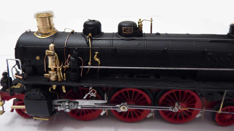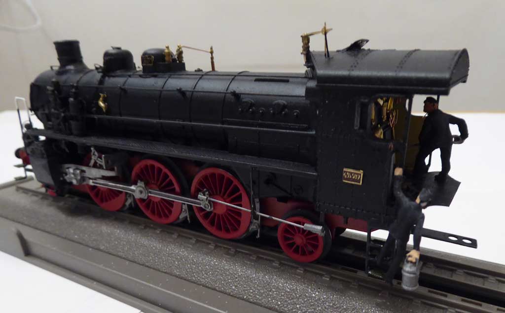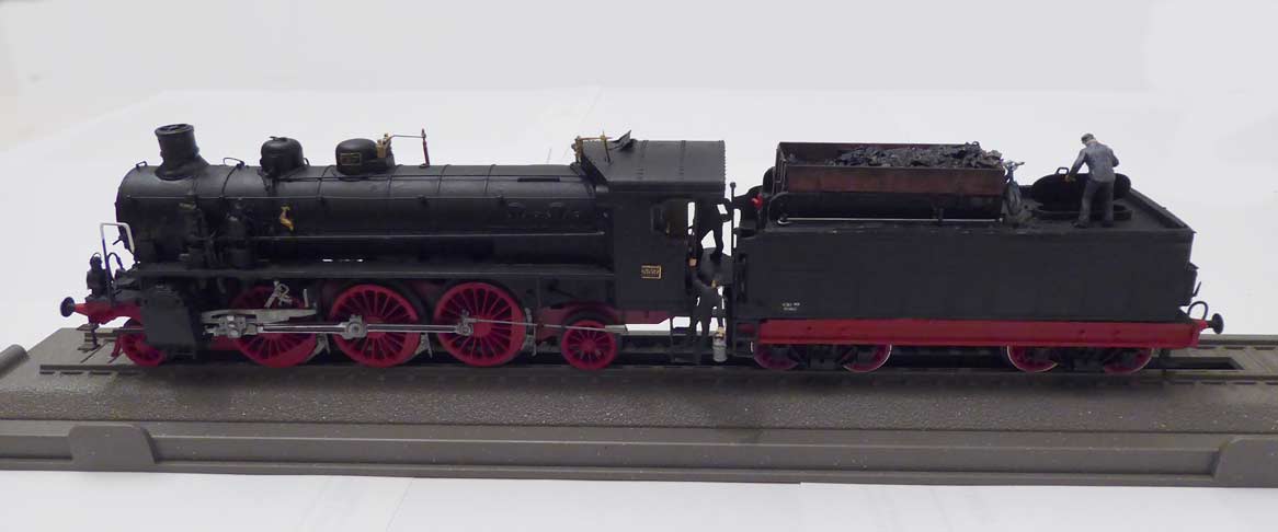 - Buongiorno a tutti ; Molto tempo fa , un' amico mi regalò una S.685 Rivarossi in scala 1:80 ; è un modello dei primi anni "60 ", quindi ha quasi la mia età ! Si presentava privo di motore, con la cabina sgombra, infatti appartiene alla serie con il motore in cabina, quale era la tecnologia adottata da Rivarossi in quegli anni ; privo di parecchi particolari, un po' impolverato, ma tuttavia ancora in buono stato generale, mentre in mediocri condizioni era il tender . Rimase sullo scaffale della mia libreria per parecchio tempo, in attesa di tempi migliori ; sapevo che per poterlo portare in condizioni ottimali, avrebbe richiesto parecchio tempo e pazienza, non mi decidevo mai quando iniziare , poi di colpo, mi decisi...Pronti con la documentazione necessaria , tra cui la " Bibbia " monografica ed introvabile di E : Mascherpa " La regina delle Locomotive " , primo libro ferroviario che acquistai...Magnifico !! Sono del parere, forse un po da collezzionista, che un modello di quell'epoca vada conservato così come sta, senza mai rielaborarlo, giusto come testimonianza storica fermodellistica di ciò che la Rivarossi produceva, anche perchè , come vedrete, per poterlo portare al realismo, bisognerebbe stravolgerlo completamente, ed attualmente con i modelli di ultima generazione , l'operazione sarebbe superflua o poco conveniente . Comunque mi ha sorpreso per molte finezze di incisione, specialmente per l'ottima caldaia, possedere un modello del genere in quei tempi , era una cosa che pochi potevano permettersi, pensate che bisognava sborsare una cifra di circa 150 mila lire, erano moltissimi ! Praticamente , tutto ciò che vedrete allo stato grezzo in ottone , è stato da me realizzato, eccetto la valvola Colale originale, mentre anche il biellismo è stato sostituito completamente ; le bielle infatti le ho realizzate in alluminio con fresatura ; la S.685, al reale, era una macchina che presentava soluzioni diverse per ogni singolo esemplare, nessuna era uguale ad un 'altra ; il mio modello è , stando a quanto ho potuto documentarmi, con guida a sinistra, e preriscaldatore sul lato destro del praticabile ; aveva due pompe, la Westinghouse e la Nielebock-Knorr da 250 litri al minuto per l'alimentazione dell'acqua . Ho dovuto, tramite tornitura su ottone, sostituire il fumaiolo, in quanto si presentava piuttosto piccolo e fuori scala, anche perchè la Rivarossi utilizzava il modello per realizzare la 680, ma nella S.685 era diverso. Il modello era privo anche dei fanali, e con vistosi buchi per le loro sedi..Ho riportato poi tutte le varie tubazioni, iniettori , fregio fascista sempre in ottone, estremamente piccolo, che ha richiesto un po di impegno, in quanto è stato realizzato con un insieme di fili in ottone rtrattenuti tra loro e tagliati a misura ; non ho dimenticato gli emulsionatori, sul praticabile di destra, più piccoli di così è impossibile realizzarli . Tutte le targhe, le ho realizzate letteralmente al microscopio, su lamierino di ottone, prima ritagliando il frammento e poi dipingendoli con pennarello indelebile nero e quindi realizzate le cifre con punta in acciaio...roba da nodo alla gola !! Le scalette sostituite con un tipo classico, molte macchine conservavano l'originale a