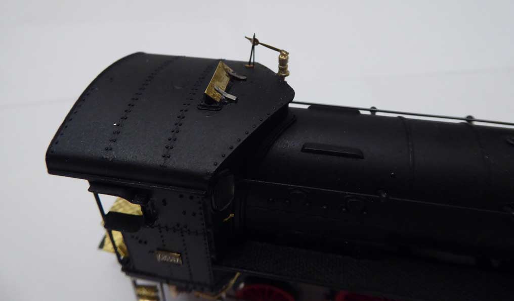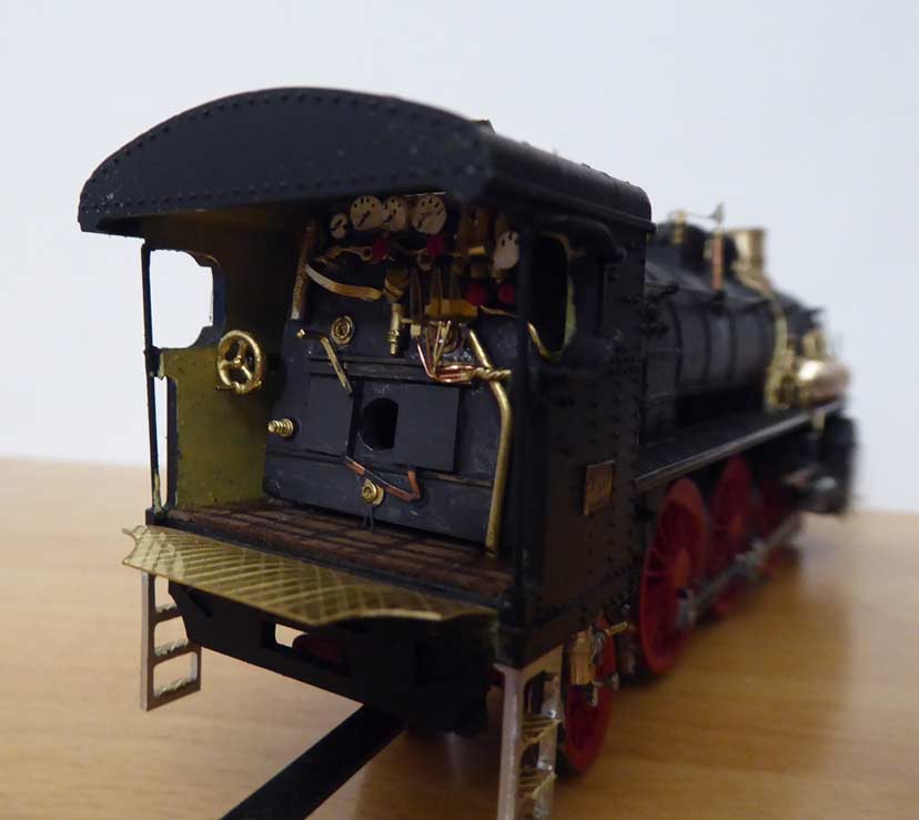 salita su gradini fissati su lamiera grossomodo "triangolare " . Non manca poi l'asta tachigrafica, ma soprattutto gli interni cabina , che mio permettranno poi di animarla con il fuochista che lavora con la lunga asta per la distribuzione del carbone .