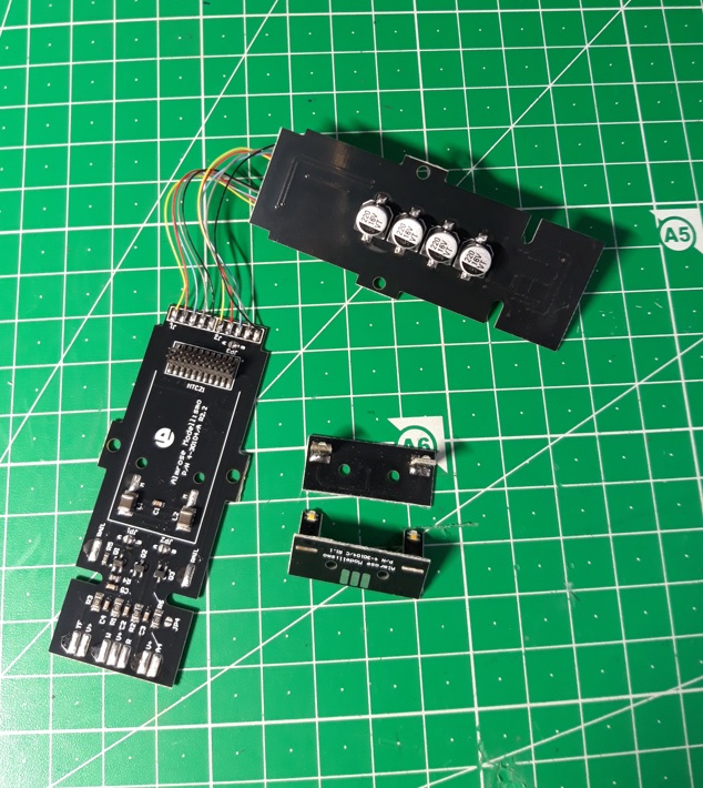 Di seguito le due parti del PCB con le due piastrine con led che andranno a sostituire le lampadine a filamento presenti attualmente sulla locomotiva. Sul sito di Almrose è presente un file da scaricare e consultare con tutte le istruzioni del caso. Questo è il link all’articolo in oggetto: