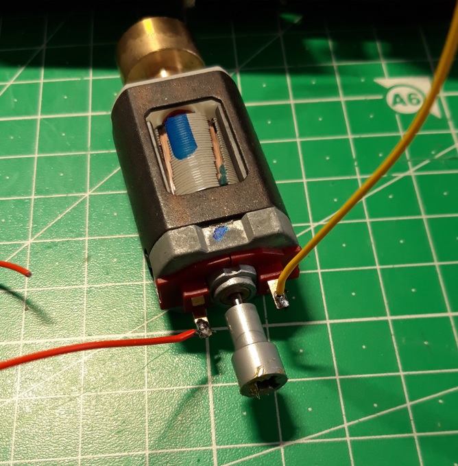 Il motore presenta i due poli elettrici liberi su cui facevano contatto le lamelle del vecchio PCB.