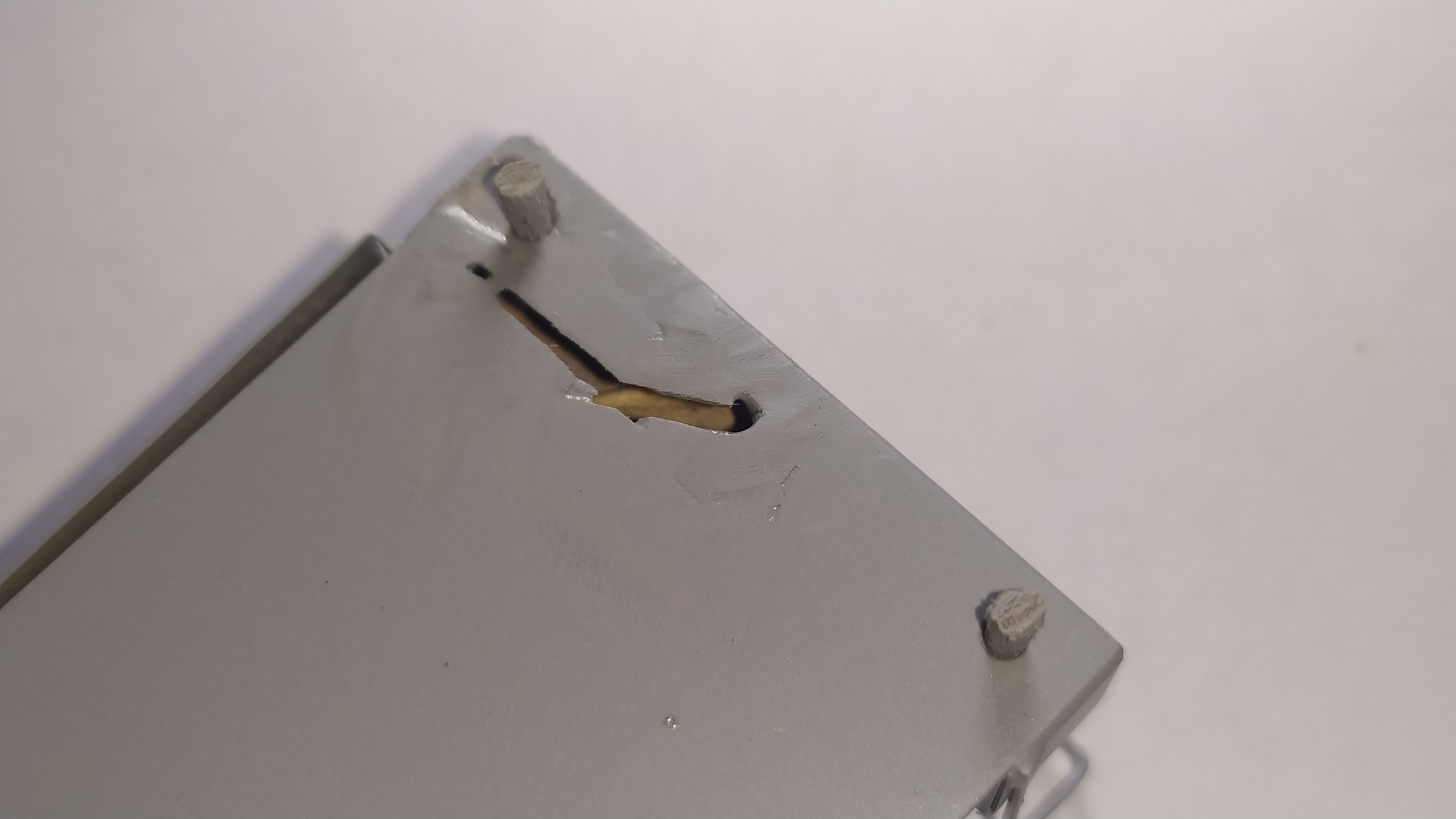 Nella parte posteriore del pavimento, inserendo dei pezzetti di stuzzicadenti per mascherare i dadi saldati dall'interno, uno di essi si è staccato.