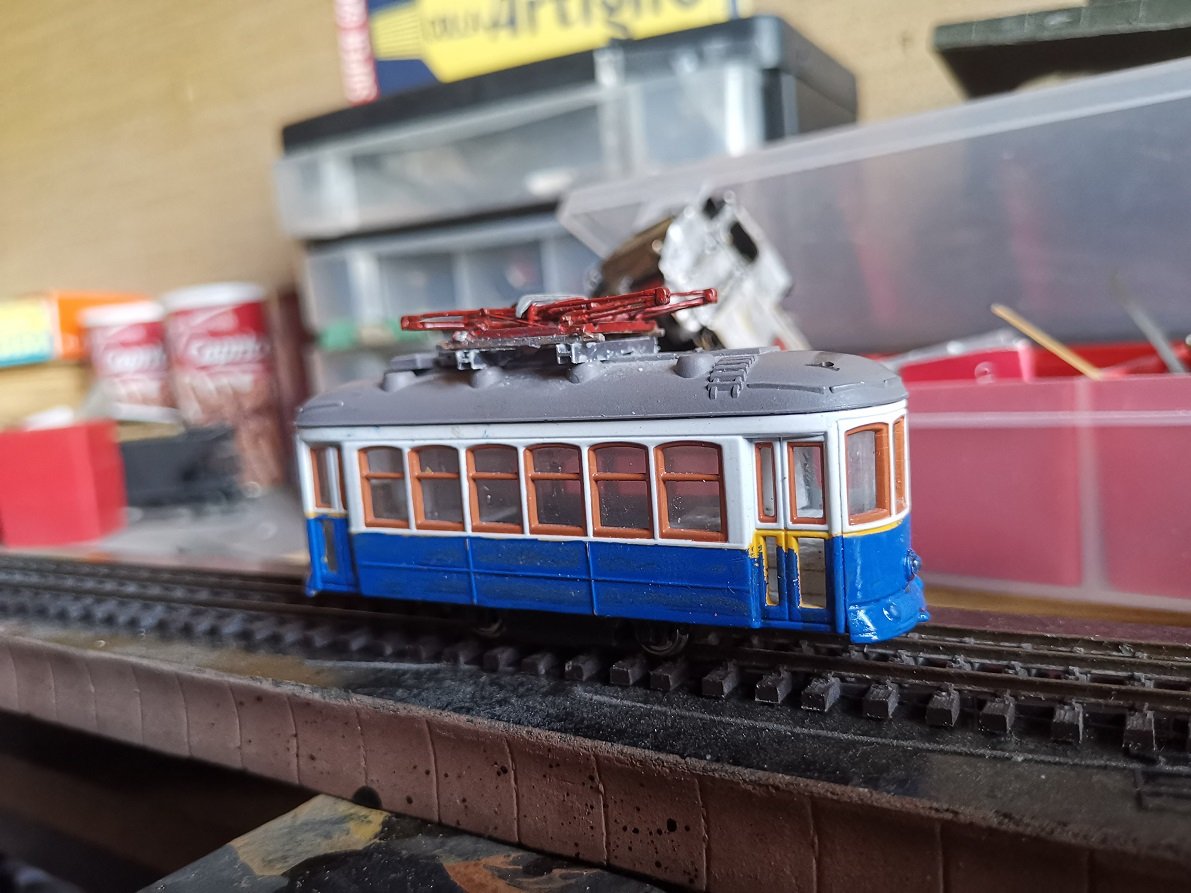 Anche se il lock down è finito ho avuto il tempo di motorizzare con carrellini Kato questo souvenir di Lisbona ricolorato con il colori aziendali della STEFER romana. Modello di fantasia in scartamento ridotto. A questo modello si sta per aggiungere un gemello. in maniera di averne una coppia disponibile per future evenienze.