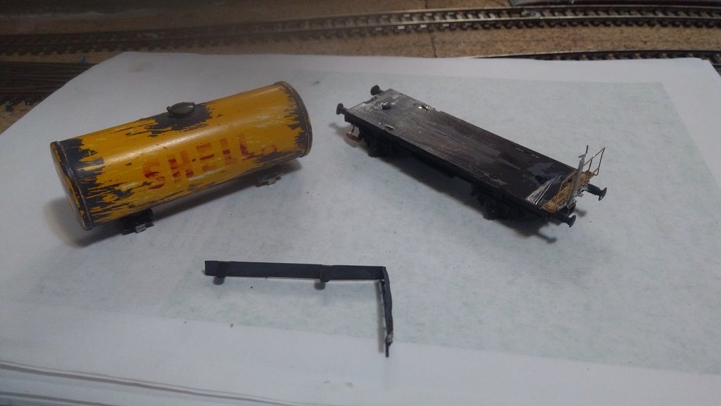 Quando ho iniziato sembrava un lavoro semplice invece… il carro ultimato non è quello presentato prima, dopo svariati tentativi di verniciatura non andati a buon fine(il risultato sulla cisterna non mi convinceva mai) mi sono arreso ed ho cambiato la base di partenza, al posto del fleischmann ho utilizzato una cisterna lima, ho voluto in qualche modo riutilizzare parti dell'altro carro, quindi del fleischmann ho utilizzato il tappo del serbatoio più dettagliato di quello lima e la scaletta con passerella in metallo che invece che scendere al centro da sul retro, per il telaio ho utilizzato quello lima, alla fine ne è uscito questo Frankenstein che non mi dispiace