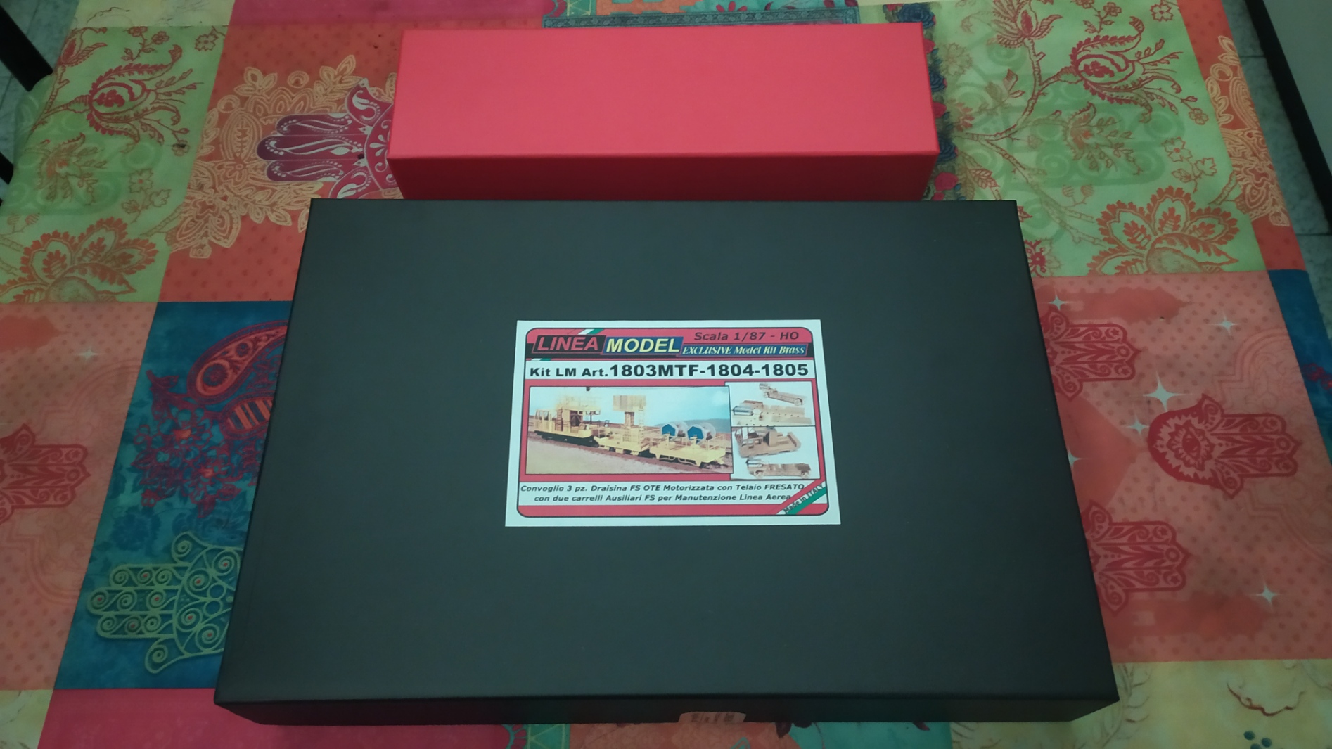 Una draisina: E la relativa motorizzazione: Un carrello ausiliare per draisina: Un carrello porta bobine: Nella confezione è presente un omaggio costituito da una scatola in cartone imbottita di gommapiuma per contenere e conservare il convoglio assemblato in tutte le sue parti: In questa discussione, cercherò di pubblicare le varie fasi di assemblaggio di questo kit dal mio puto di vista e portare varie soluzioni techiche quando ve ne fosse la necessità.