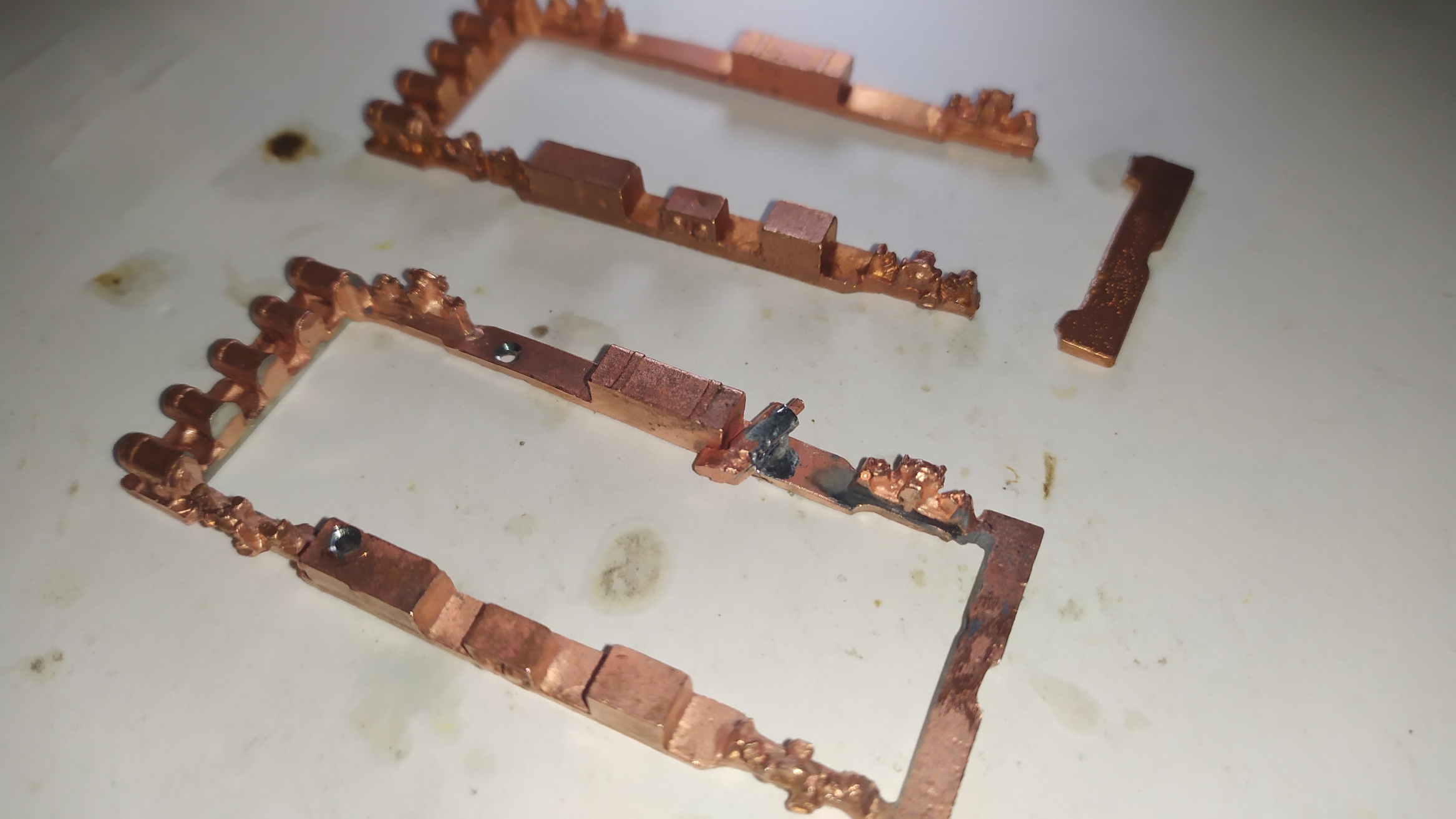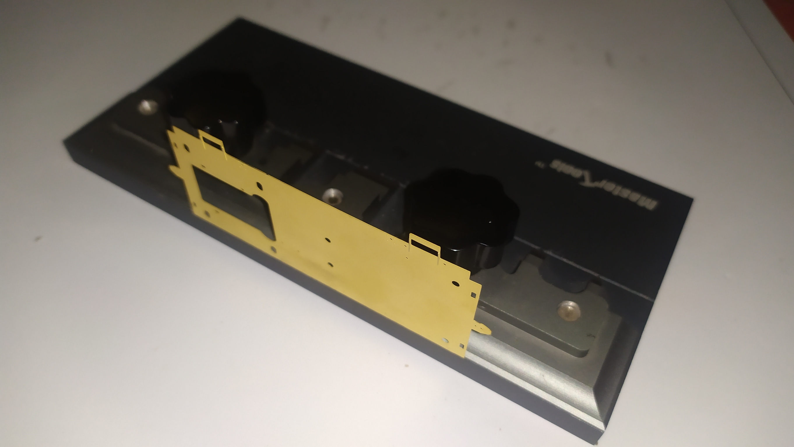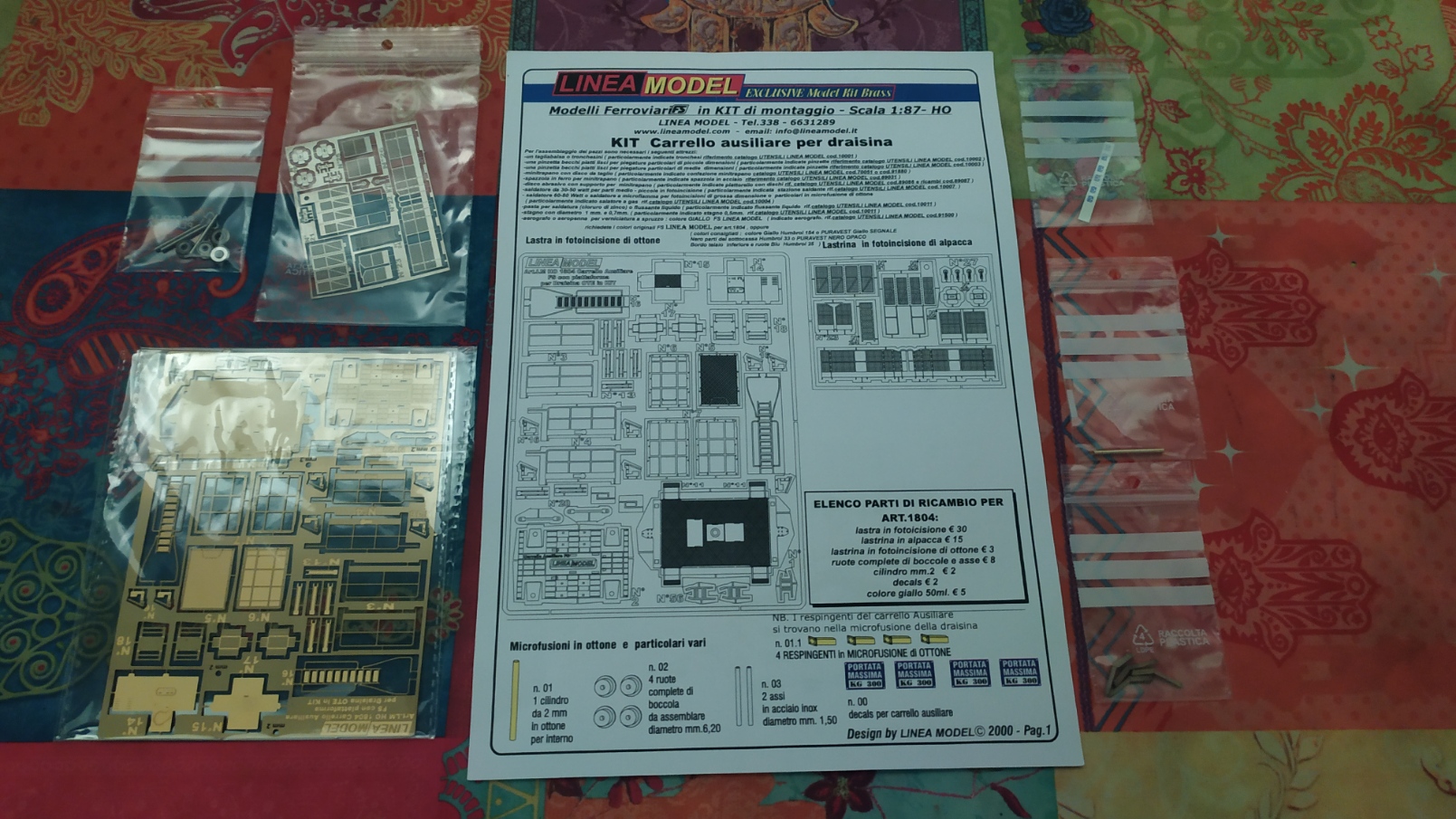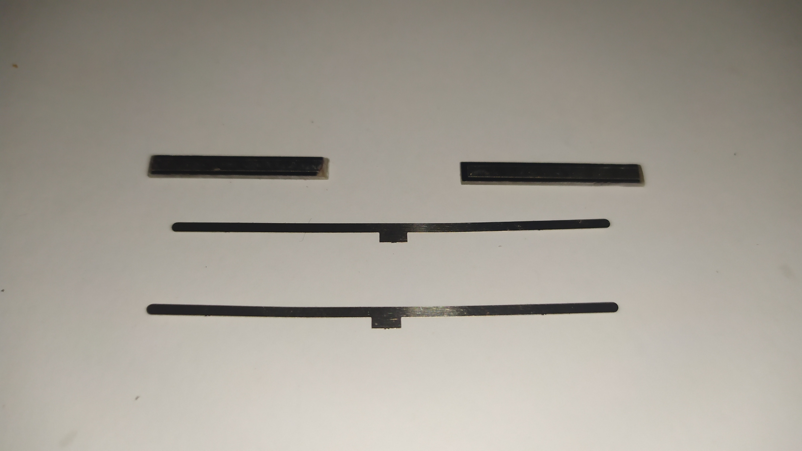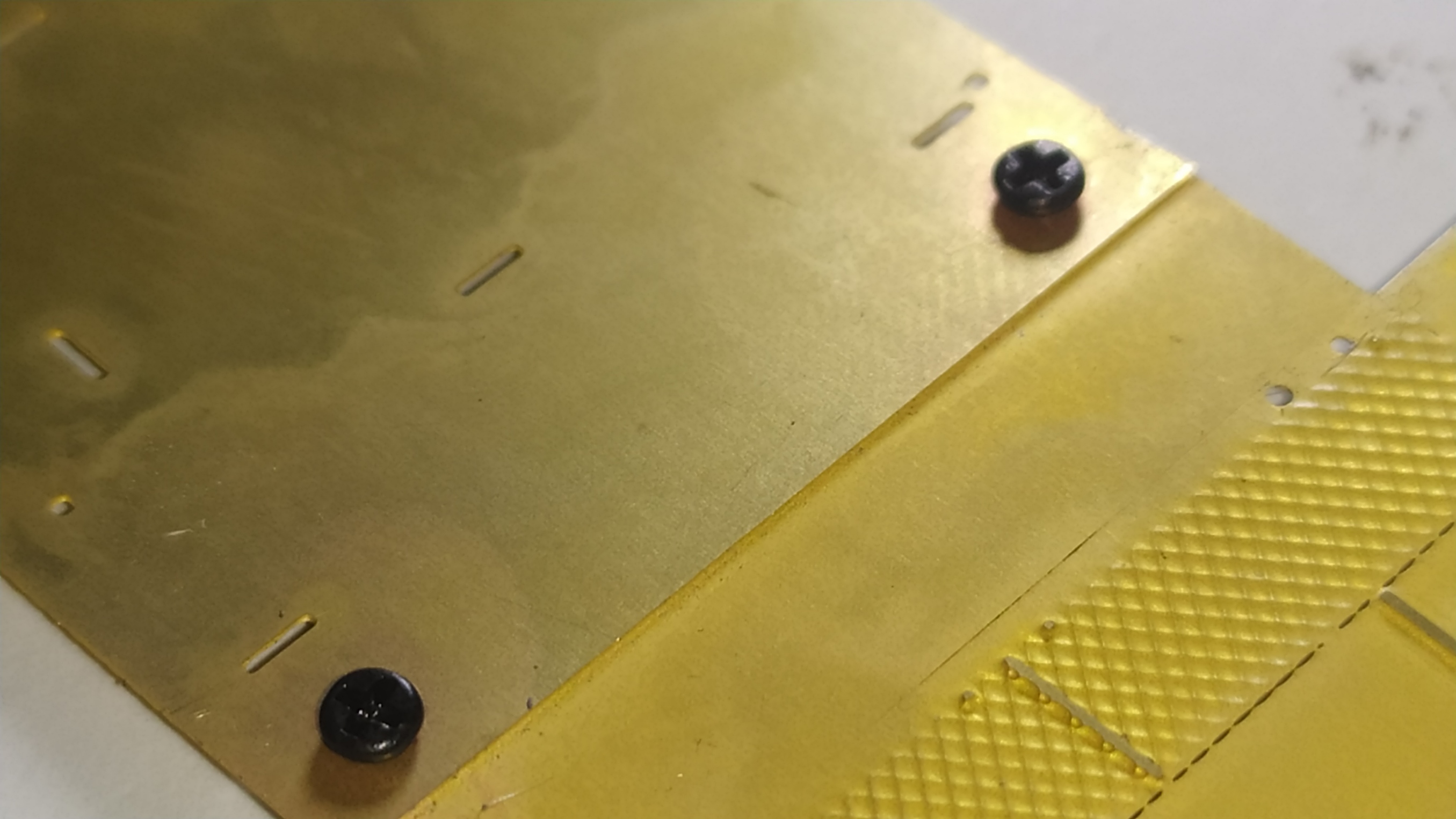 Qui sotto le varie parti del kit: La lastrina in ottone è spessa 0,35 mm, mentre quella in alpacca solo 0,15 mm.