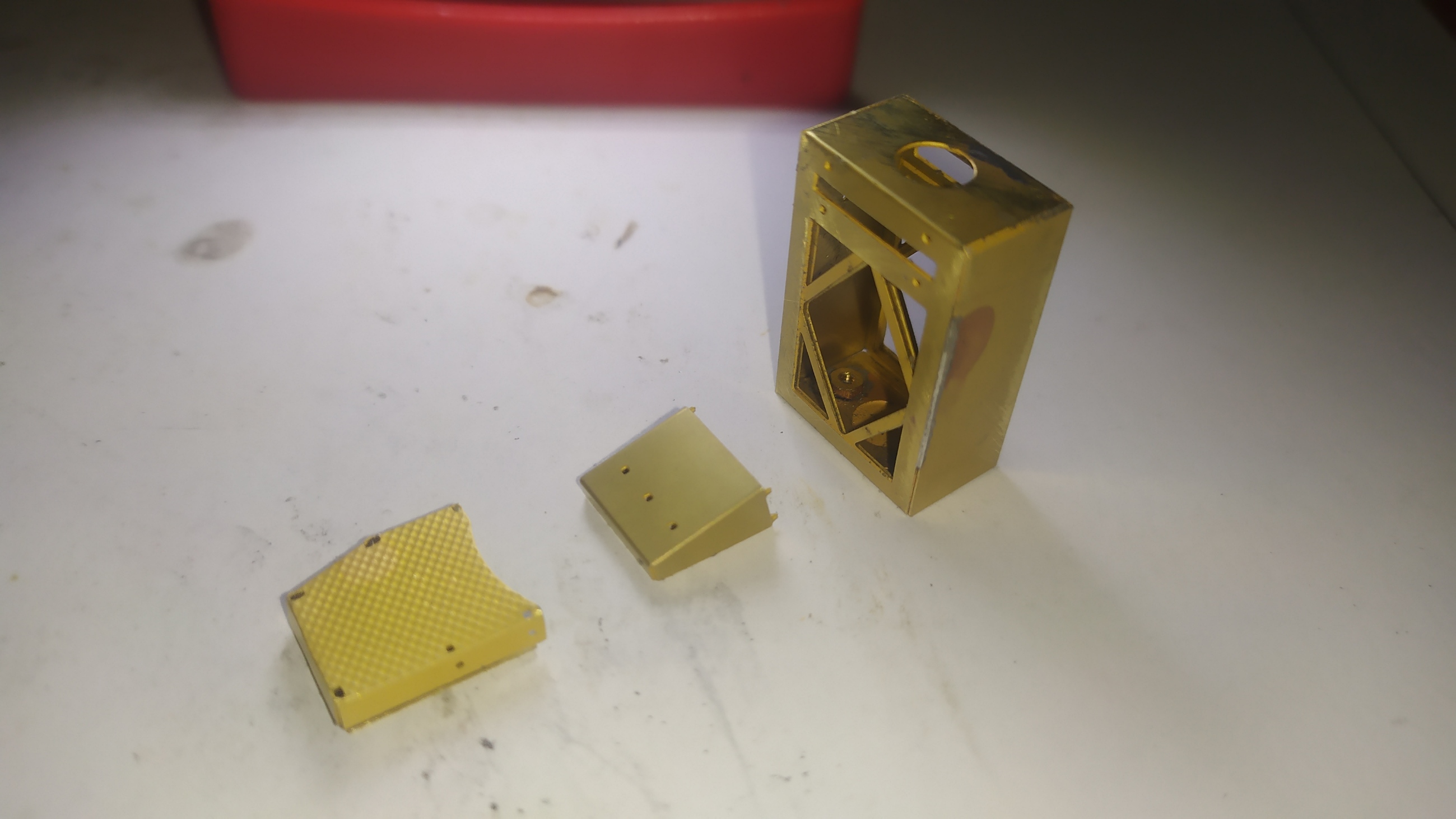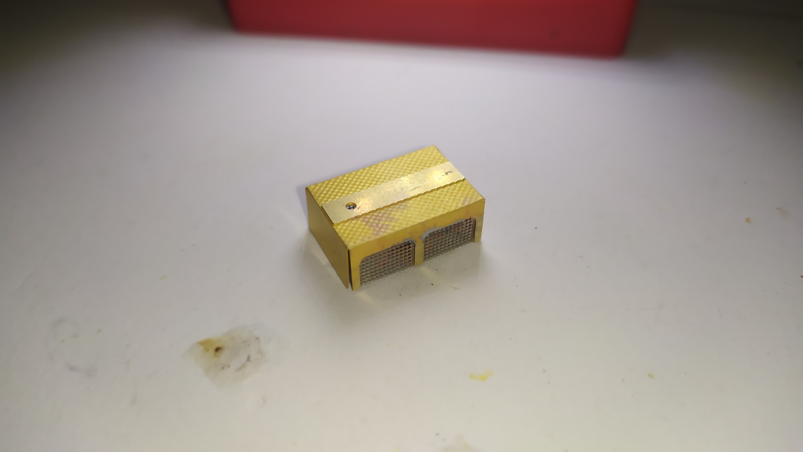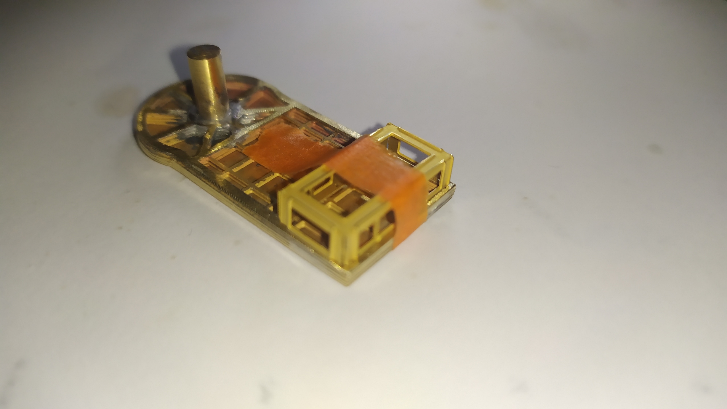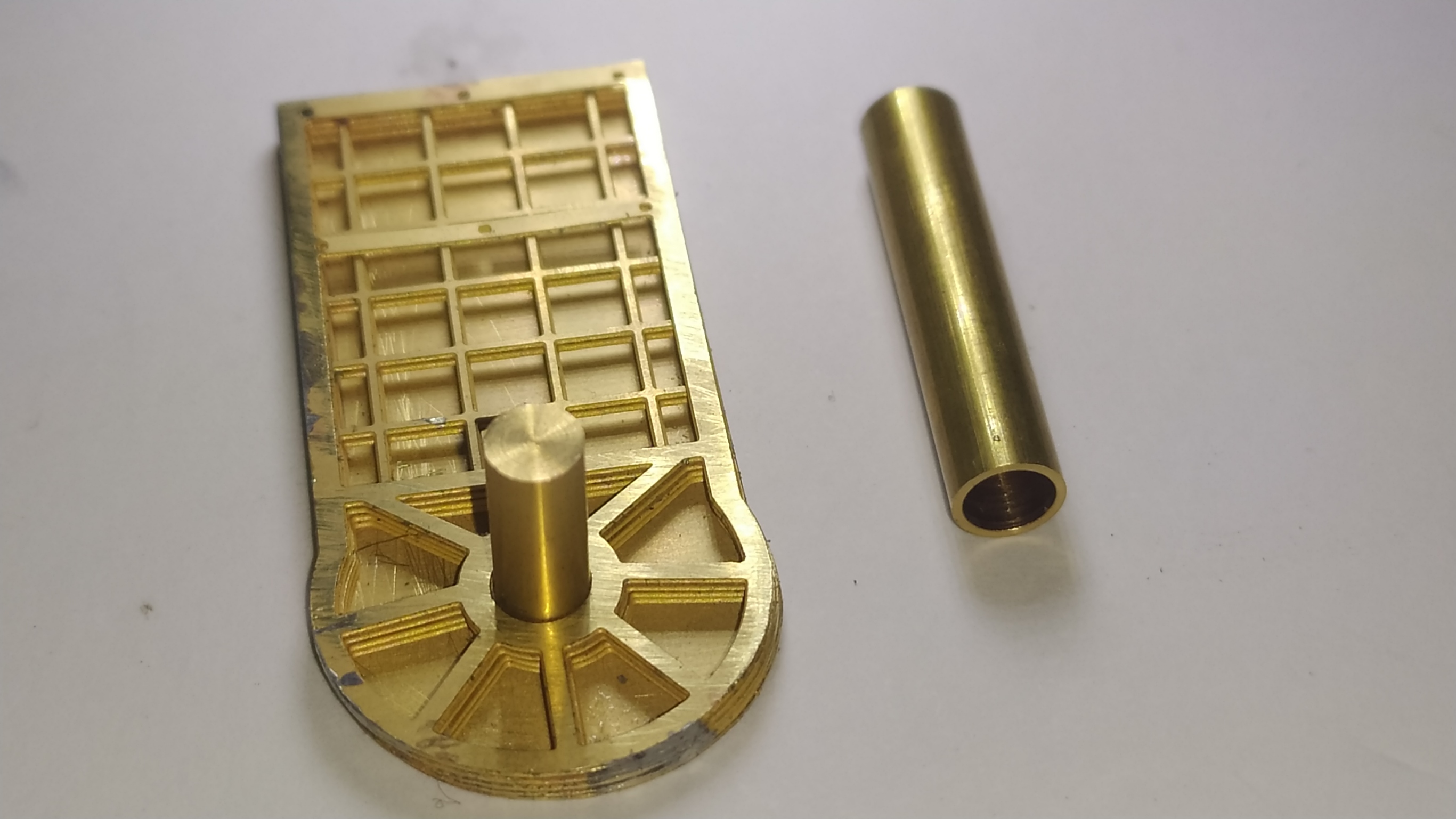 La motorizzazione di questo modello parte da un telaiio in ottone fresato in CNC fatto veramente bene: Il telaio si presenta da rifinire nelle superfici con lima e carta vetrata per eliminare eventuali sbavature e residui di lavorazione su tutte le superfici e gli spigoli. É necessario anche lavarlo con diluente o trielina pe eliminare qualsiasi impurità.