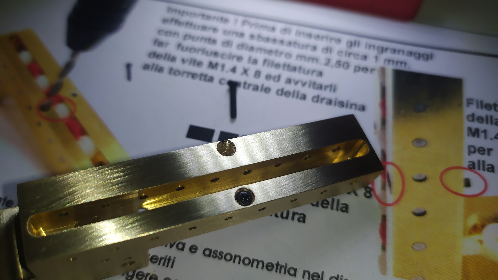 In questa fase svasare manualente e leggermente tutti i fori presenti con punte da trapano da 2/2,5 mm.