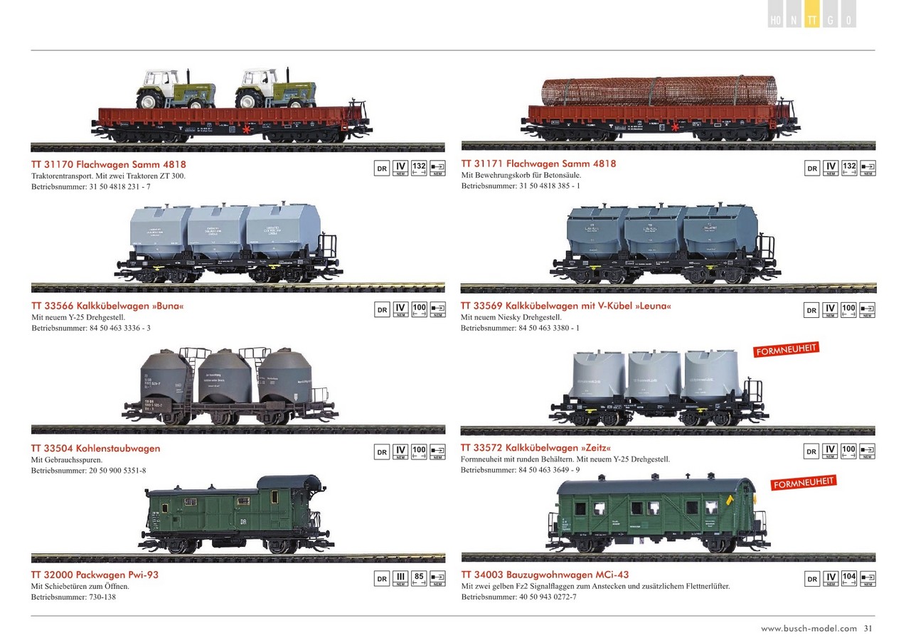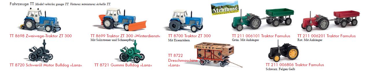 Busch, nel suo catalogo novità 2018, propone alcuni carri, modelli di trattori e mezzi agricoli in scala TT