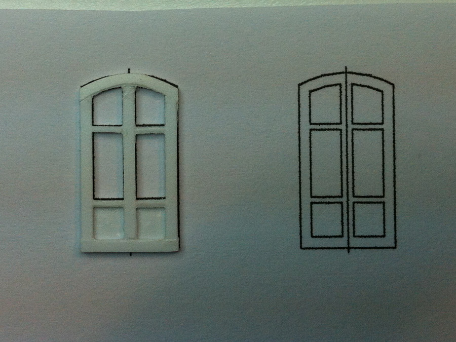 Altra tecnica, stampa su carta del serramento e con listelli di stirene tagliati a misura faccio i vari elementi.