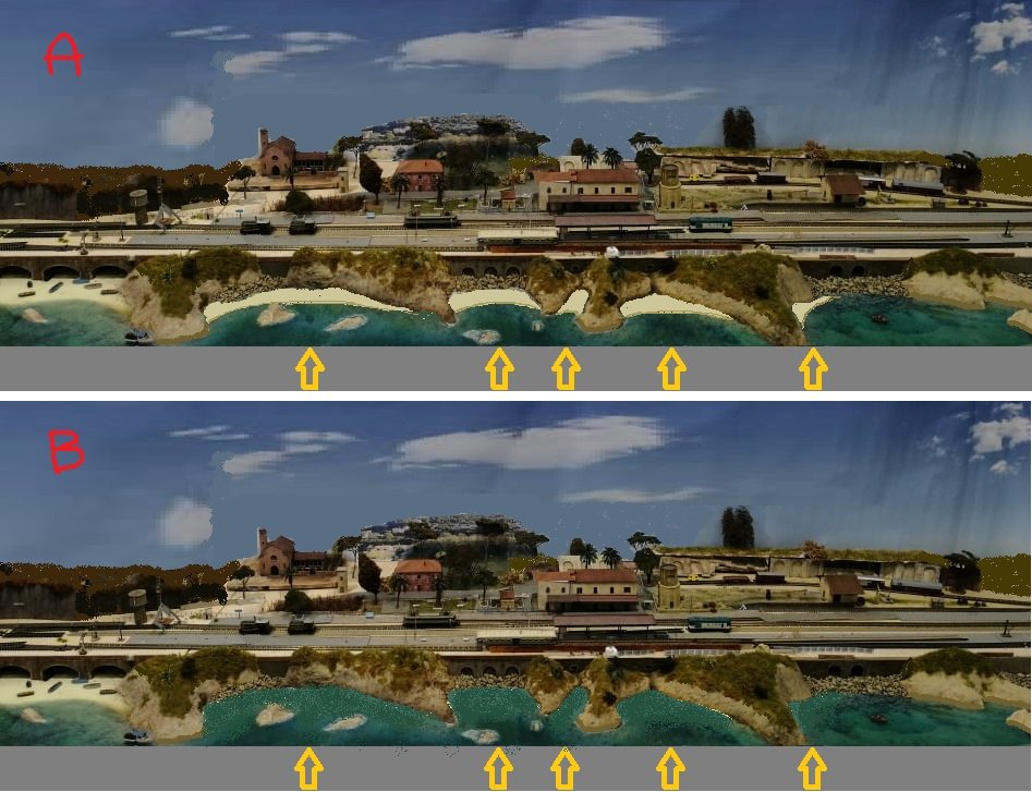 Metto 2 foto.Una con il mare increspato (bello se visto dal basso) e l'altra con il mare "piatto" (bellissimo per me se visto dall'alto) Io vorrei mantenere la totale trasparenza.Voi che dite?E' un compromesso accettabile?Si tratta di scala N