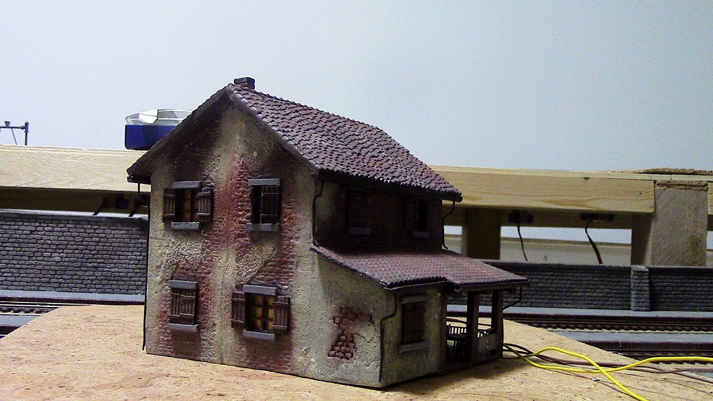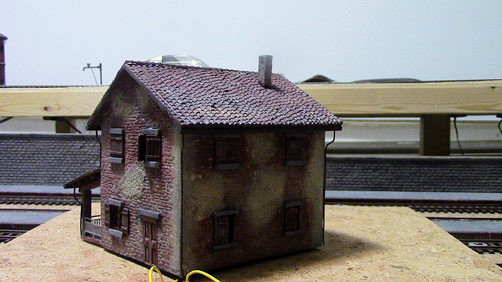 Adolfo per il tetto quello principale della casa ho riutilizzato il suo dopo averlo ridimensionato altrimenti era troppo grande avendo rimpicciolito la casa, (vedi prima foto)devo dire che la riproduzione dei coppi e davvero ben fatta e i coppi risultano irregolari tipici delle vecchie case, per l'estensione invece ho utilizzato una lastrina commerciale, sono lastrine che avevo comprato a Novegro allo stand di A.Collo :wink:
