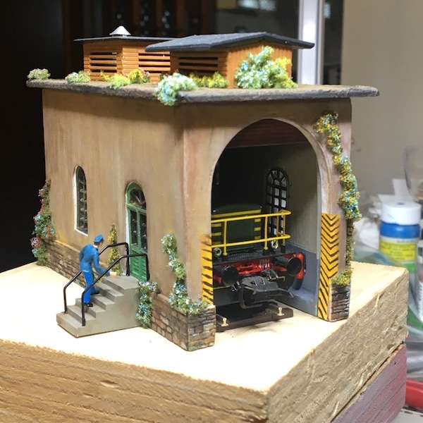 Ciao, sul mio plastico avevo la necessità di mettere una piccola rimessa per il mio D214 Roco, una cosa piccola che non ingombrasse molto, avevo dei rimasugli e ritagli di legno così ho creato questo piccolo manufatto