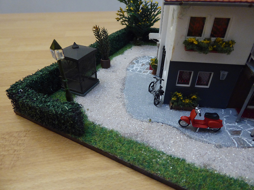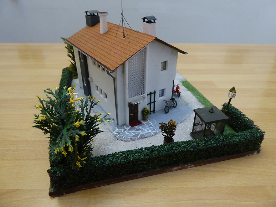 Ciao a TuTTI :D Primo modello dell'anno, ma stavolta da un kit della Vollmer, art 9220 in H0, che avevo da molti anni, che mi sono deciso di costruire più che altro come oggetto da vetrina o soprammobile, un kit facile per una villetta dal design assai graziosa, adattabile in qualsiasi situazione, contenuta in una piccola basetta di 21,5 X 15 che ho rielaborato in alcune parti, aggiungendo molti dettagli vari autocostruiti, col senno di poi qualche lucina accesa avrebbe reso ancora più interessante la scenetta, ma non avevo materiale per farlo , in aggiunta poi ho sistemato la voliera che costruii molti anni fa ( vedesi il mio topic " Voliera di stazione " viewtopic.php?f=87&t=6606&p=226720&hili ... ne#p226720 )