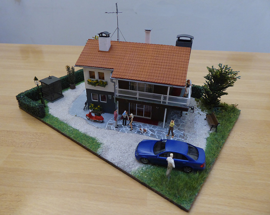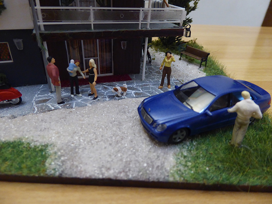 Ho cercato di combinare i figurini Preiser in un momento di discussione famigliare . Ho ritenuto stavolta di non di dipingere il modello, contrariamente a quanto ho sempre fatto, ed è la prima volta , la plastica è di buona fattura e può essere acettabile così com'è specialmente le parti bianche , solo il tetto è stato necessariamente ridipinto e credo di aver fatto complessivamente la cosa giusta, ne sono soddisfatto . [253] [253]