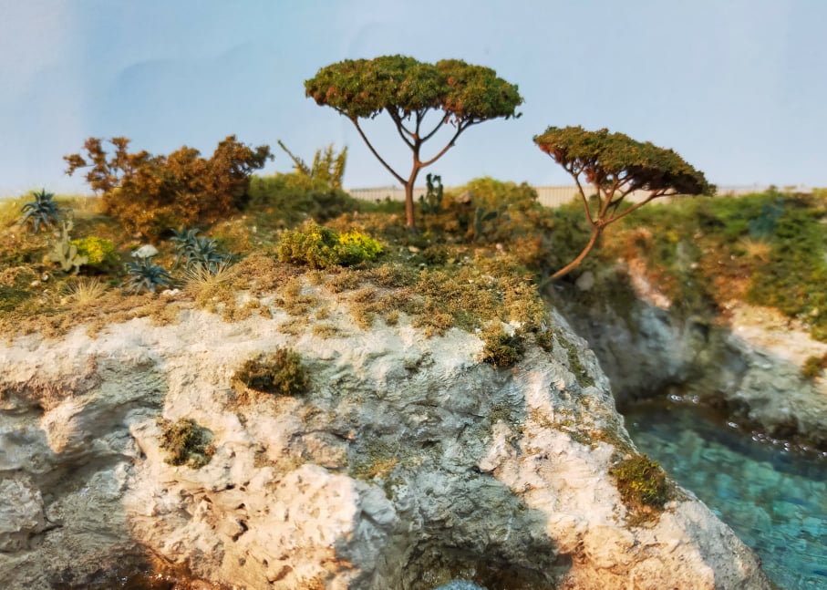 Sulla vegetazione... in generale... pennello sporco di giallo e picchietta sulle chiome in direzione sud a schiarire... stai leggero.