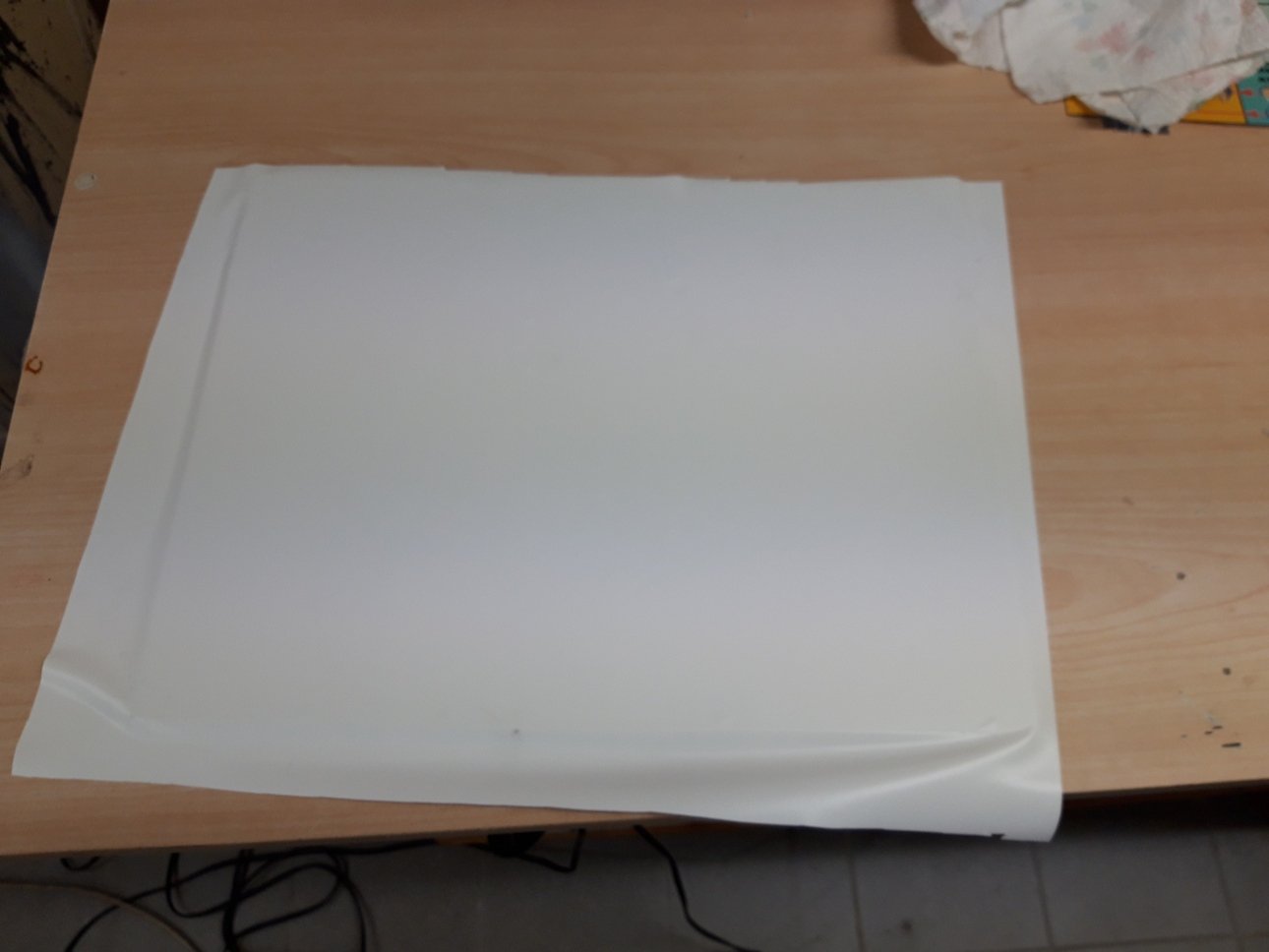 La dimensione del pannello è di 330x260 mm, quindi un semplice foglio A4 non lo copre tutto. Basta farne 2 ed unirli....