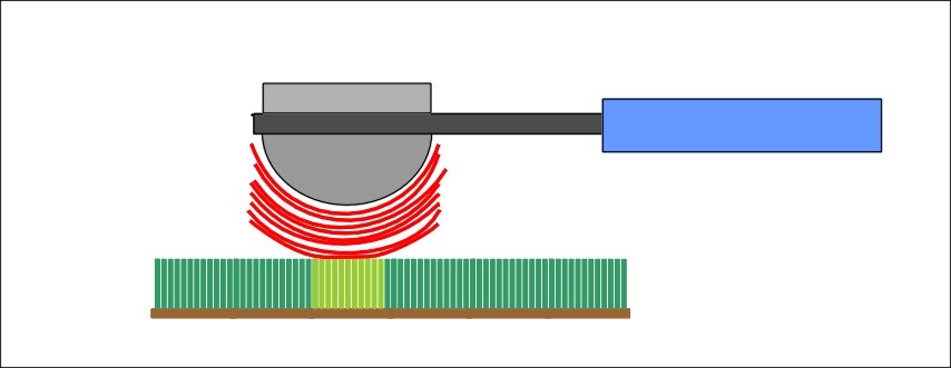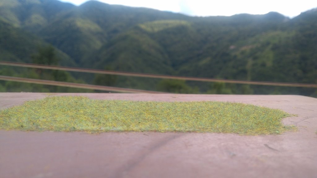 In effetti il pianta erba elettrostatico autocostruito con "l'antizanzare" crea un campo che rizza elettrostaticamente l'erba sintetica, attraendola verso il colino metallico.