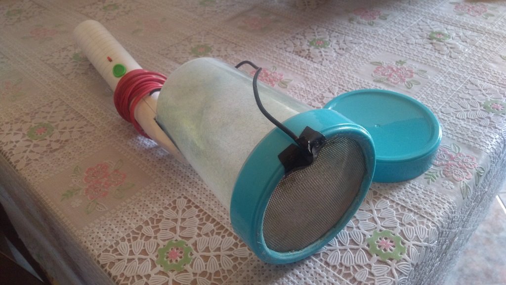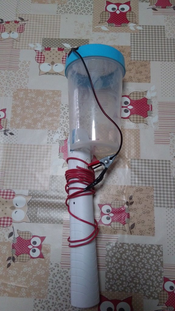 Io, avendolo già da anni costruito con la classica racchetta per zanzare, ho deciso di modificare solo il colino, installando un contenitore chiuso con rete spargente spiana. Ma solo perché l'avevo già fatto. La modifica è stata una passeggiata.