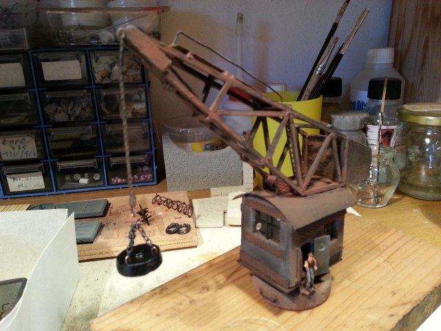 Aggiornamento diorama operativo scalo merci fs como lago: da quando l'amico Salvo mi ha dato le due foto storiche della gru in azione nel vecchio scalo, non potevo non autocostruirmi la calamita, che è ben visibile nella foto della gru in azione, che serviva per caricare i rottami di ferro dai carri ai barconi, tutte le fasi dell'autocostruzione nelle foto