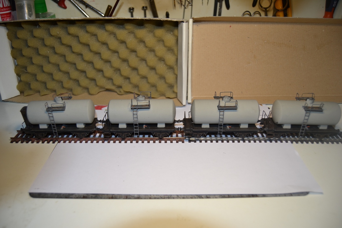 Per far spazio sulla scrivania delle elaborazioni, satura di modelli incompiuti, ho deciso in questi giorni di terminare anche i carri cisterna in questione, che ivi giacevano smontati da oltre due decenni.