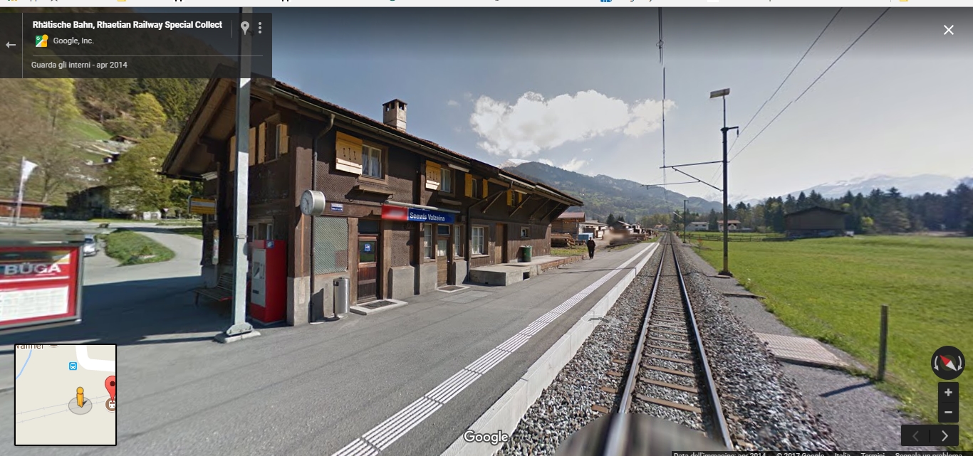 La mia dolce metà è nata in Svizzera e periodicamente durante le vacanze ci facciamo una puntatina, In queste foto, prelevate da google maps, vi mostro la Seewis station e la stazione di Grüsch, a me ricordano molto quella della raccolta lo street view di google maps della svizzera è stato realizzato in treno quindi è abbastanza facile dare uno sguardo