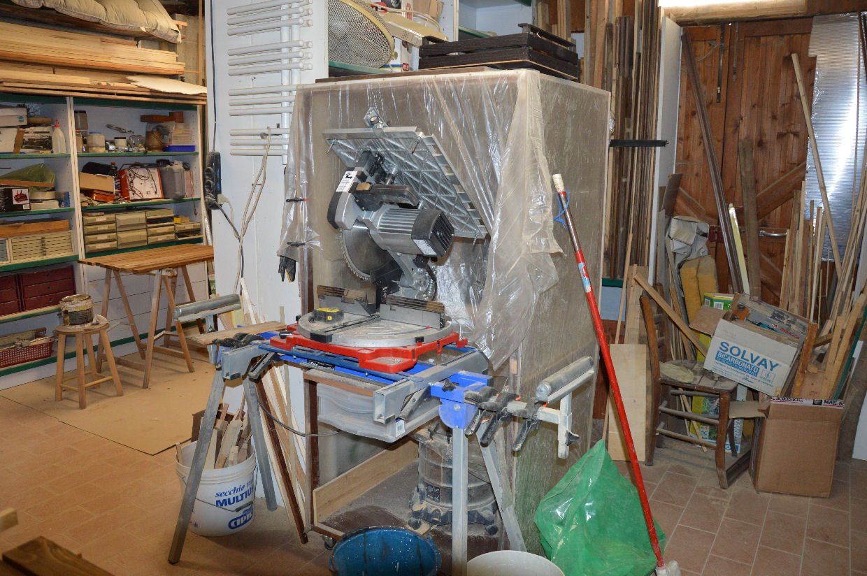 Piccola elaborazione della troncatrice per cercare di limitare la polvere, il sistema funziona ma deve essere migliorato in quanto la forza centrifuga spinge la polvere in alto e quindi in faccia.