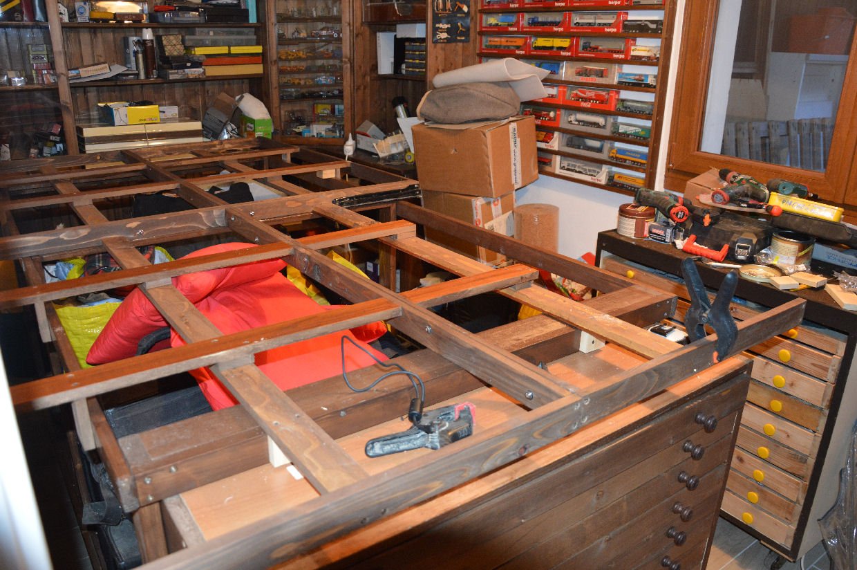 Ed ora una piccola carrellata di foto relative alla base del plastico che ho dovuto prevedere a 6 ruote avendo concesso lo spazio sotto alla mia dolce metà che mi ha concesso la stanza rinunciando all'ufficio che è finito nel salotto, se questo non è amore!