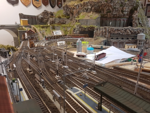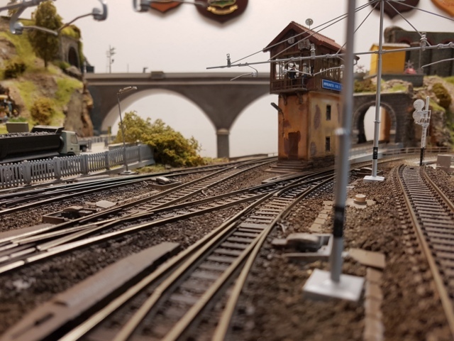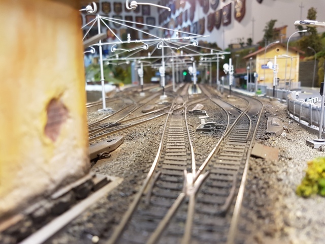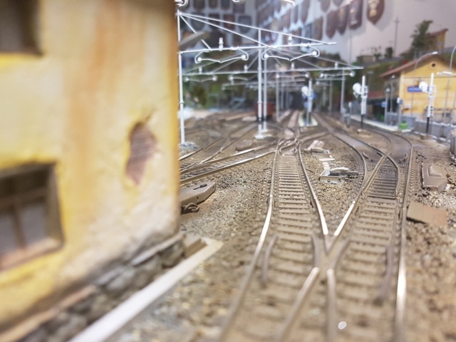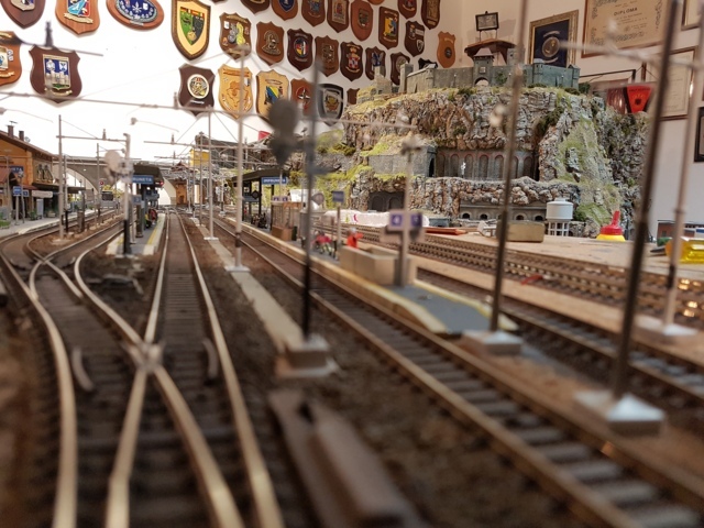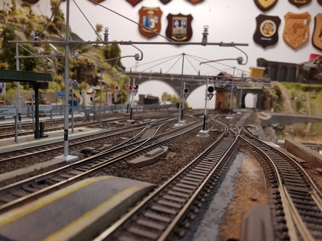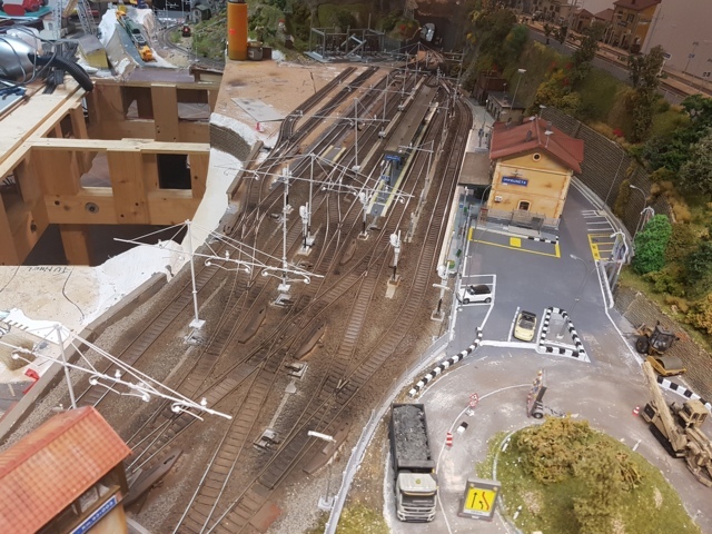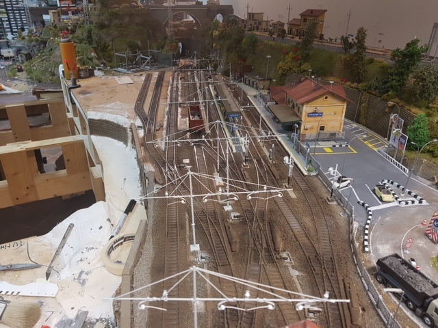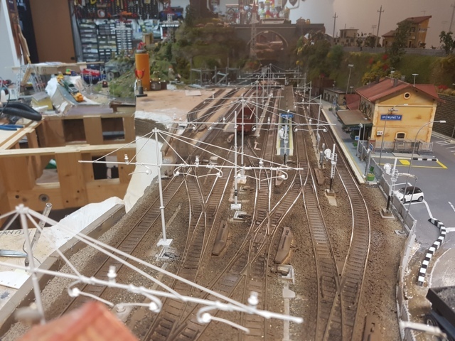 Per Massimiliano devo dire che lo schema del tracciato è tale che il 1 binario è destinato al solo transito di materiale a trazione vapore o diesel. Ecco perché non ha palificazione. Se entri sul 1 puoi andare solo o al borgo o alla miniera. Ambo le linee sono eslusivamente a trazione termica.