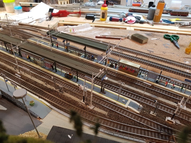 Ovviamente la pensilina come pure la sala d'attesa la chiuso sono illuminate anche se nelle foto non lo sono in quanto ancora non collegate. la pensilina è provvista di due sottopassaggi. quello sotto la pensilina, di produzione del nostro Amico Salvatore, è per il pubblico, mentre quello quasi al termine del marciapiede è per il personale di servizio che lo utilizza recarsi nell'area dello scalo containers (da costruire e separato dalla area stazione da una recinzione.