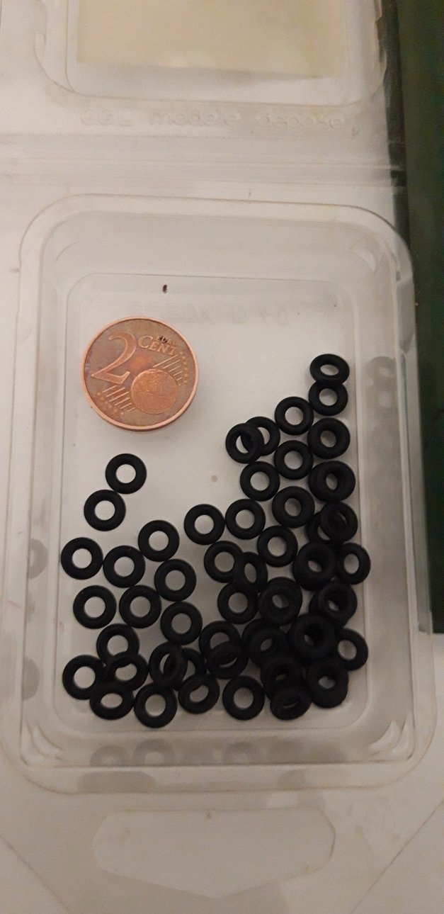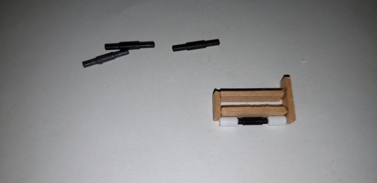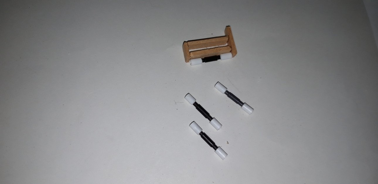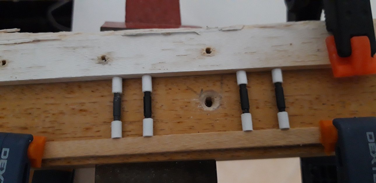 Ho tagliato 4 pezzi di ottone (sbiancato - avevo quello in casa) lunghi 12 mm e li ho inseriti nei fori predentemente fatti.